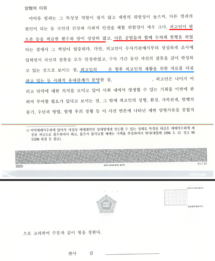 - 기소 후에도, 동종 마약 매수-투약 사건이 계속 이슈되면서, 추가 입건-기소/병합이 반복되어 재판부 역시 피로감을 느끼는 상태였음