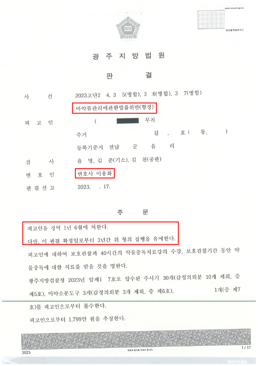 + 약 30회 투약/매수/취급, 경찰조사 진행 중 계속된 투약, 주변인에 대한 권유, 실제 주변인의 투약 시도, 사전 구속영장 발부 등에도 불구하고, 본안에서 집행유예 선처를 받았던 이 사건 판결에 대한 상담이 필요하실 경우, < PLATZ > 플라츠 법률사무소, 이용화 대표변호사에게 문의하여 주시기 바랍니다.