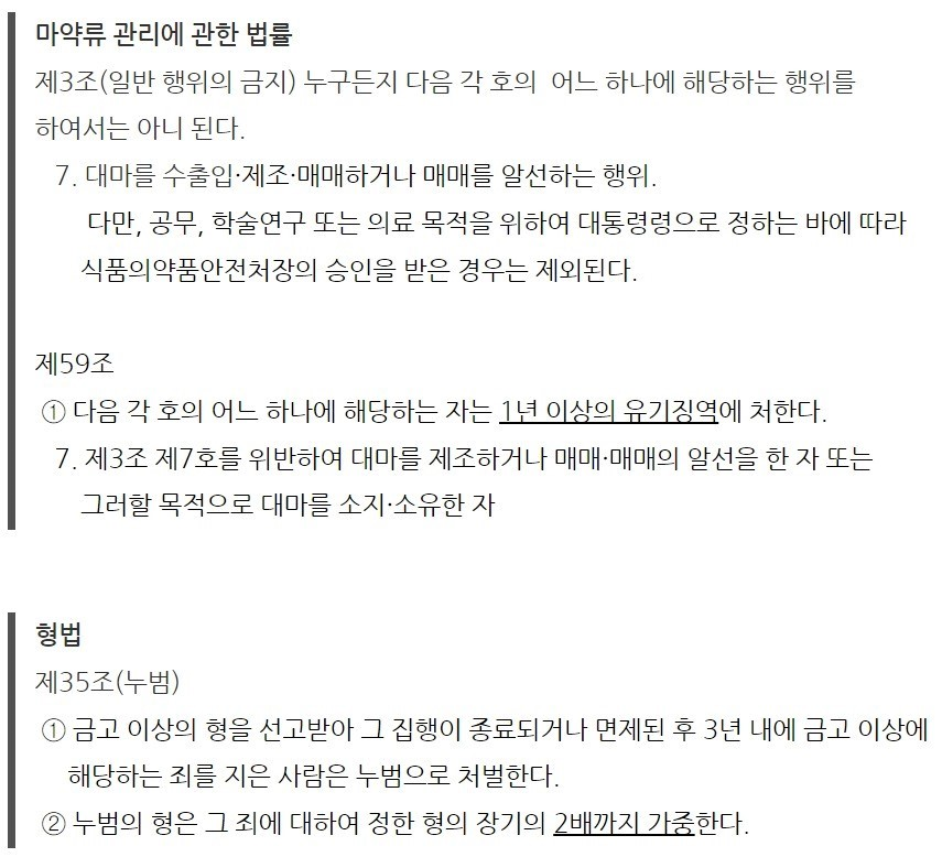 마약은 재범의 위험성이 높을 뿐만 아니라 환각성, 중독성 등으로 인해 개인은 물론 사회 전반에 미치는 해악이 크기 때문에 처벌 범위가 넓고, 엄격한 기준으로 처벌하는 중대 범죄입니다.