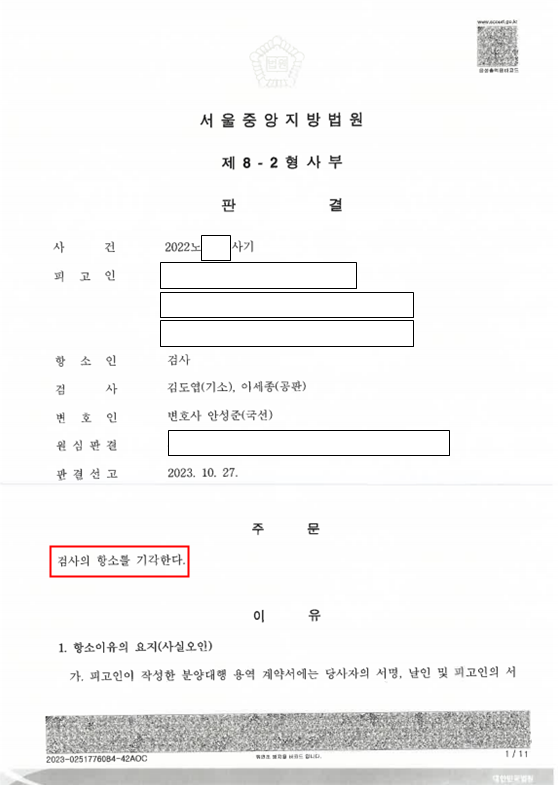 ● 2심(항소심) 판결선고