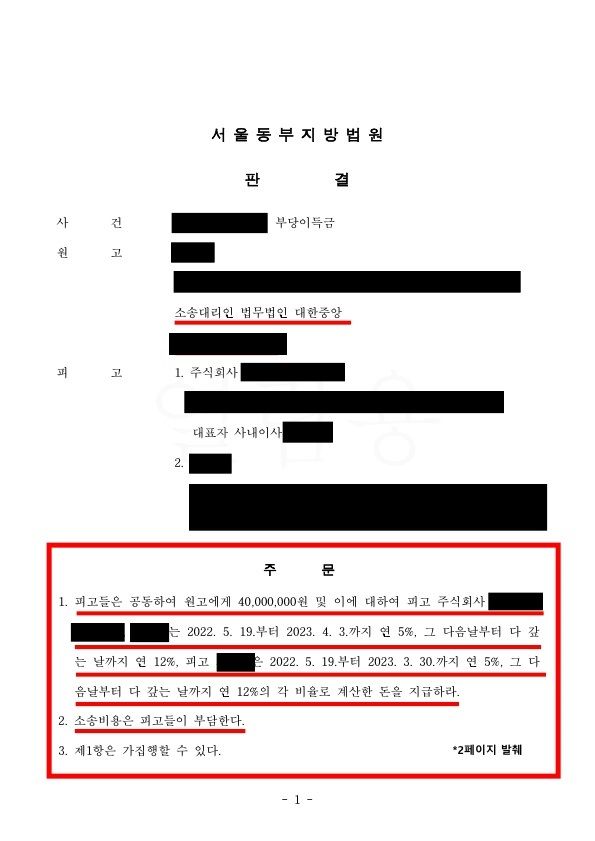 법원은 법무법인대한중앙의 주장을 받아들여 리딩업체는 청구한 4,000만원 전액을 돌려주고 소송비용도 전부 부담하라고 판결했습니다.