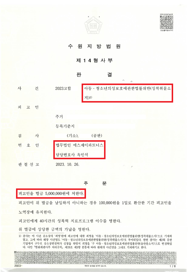 이러한 저의 조력을 바탕으로 A씨는 사건 초기에 잘못 대응하여 신법으로 기소되었음에도 불구하고 구법을 적용시켜 벌금형을 선고받음으로써 사건을 최대한 가볍게 마무리할 수 있었을 뿐만 아니라 신상정보등록 대상에도 해당하지 않게 될 수 있었습니다.