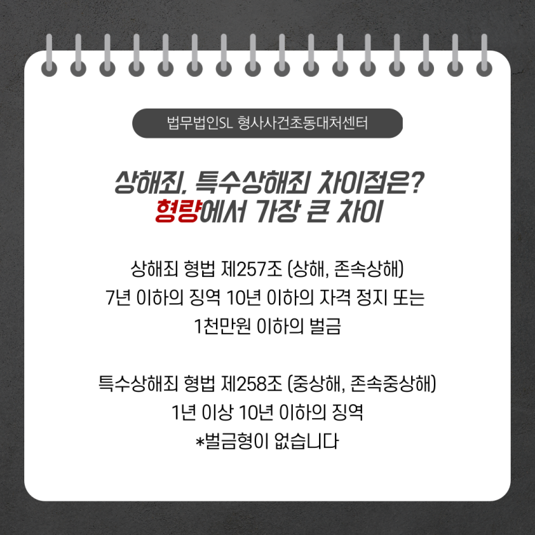 상해, 폭행 사건은 우리 주변에서 빈번하게 발생하는 사건이죠? 의도하지 않게 폭행 사건이 일어나서 저희 법무법인SL을 찾아주시는 분들도 많습니다. 오늘은 상해죄와 특수상해죄의 차이점, 형량, 처벌 수위에 대해 다뤄보려 합니다.