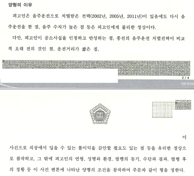 의뢰인의 경우, 과거 동종전력이 비교적 오래 전의 것이기는 하지만 음주운전 횟수가 4회에 이르고 혈중알코올농도도 낮지 않았으므로 징역형의 집행유예 이상의 처벌을 받게 될 가능성이 매우 높았습니다.