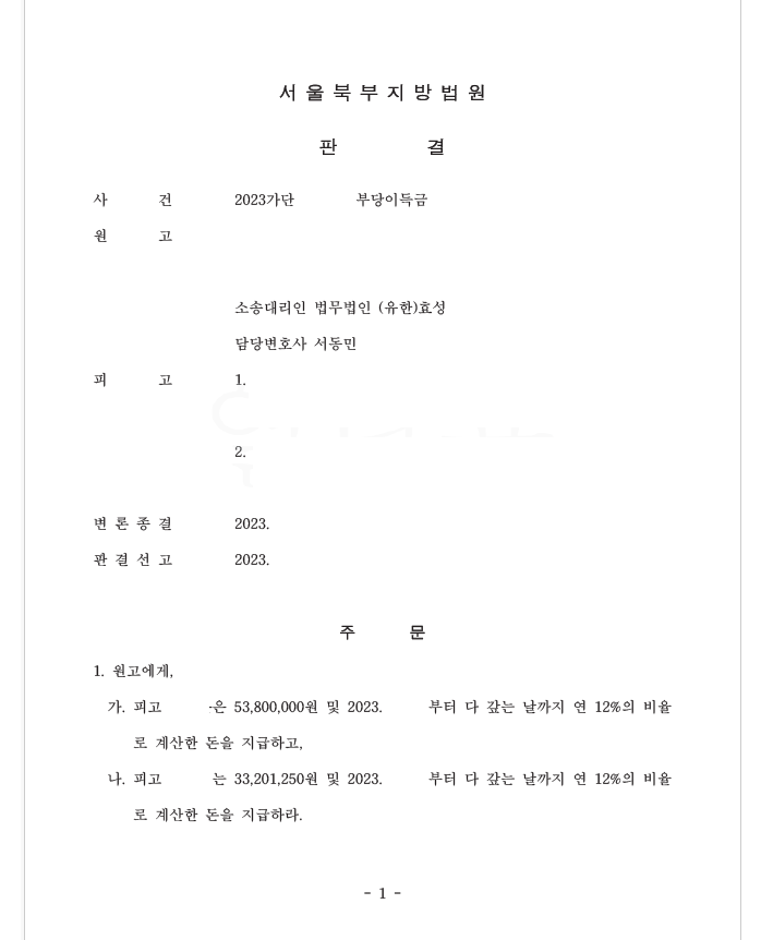 저는 즉각 입금 받은 자들을 피고로 하여 민사소송 부당이득반환청구소송을 제기하였고 법원은 원고 승소 판결을 선고하여 의뢰인은 피해액을 반환받게 되었습니다.