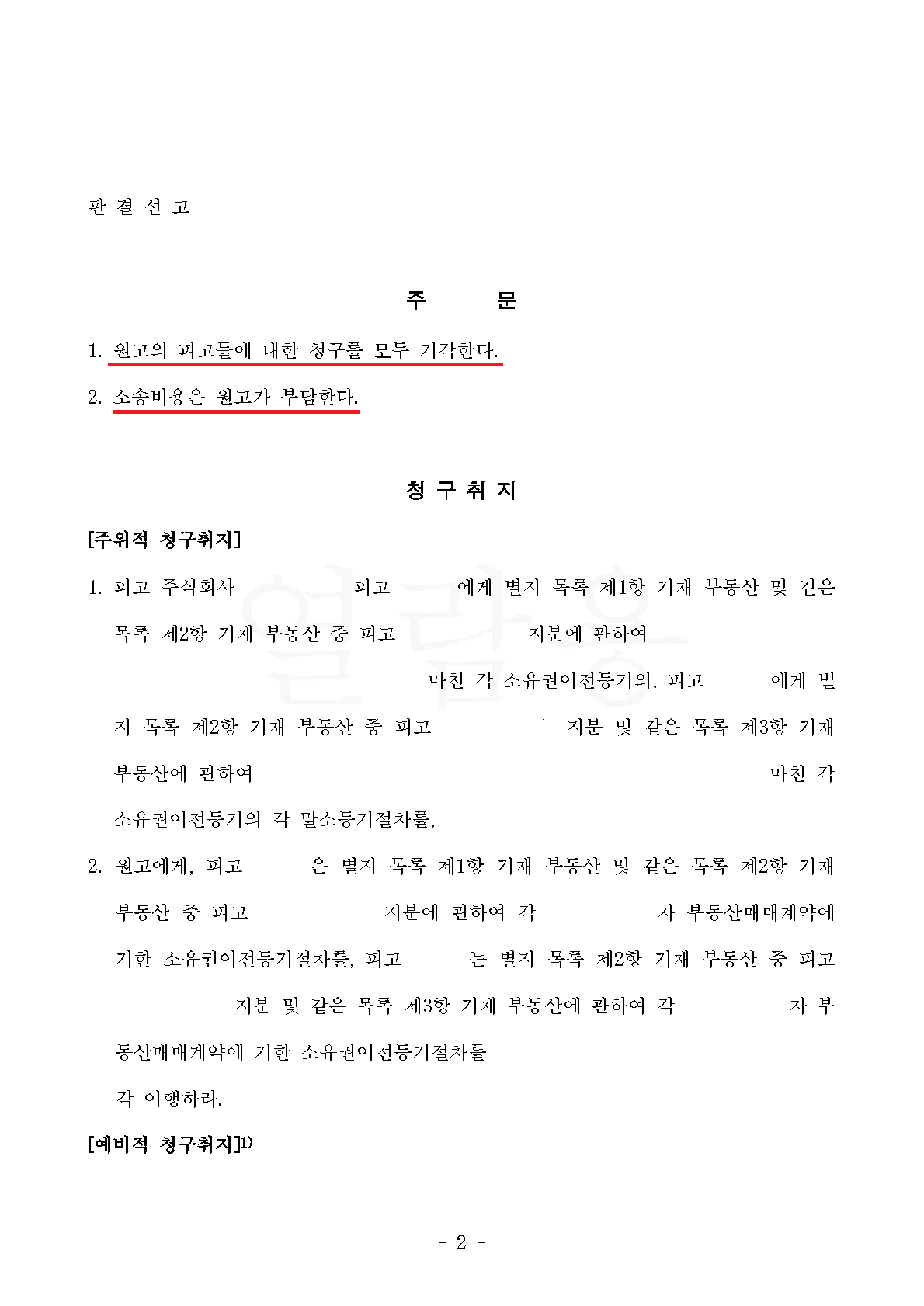 원고의 청구 기각