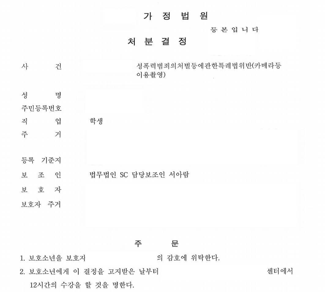 혐의를 전부 인정하는 사건이었기 때문에 사건은 곧바로 송치되어 심리가 개시되게 되었는데요. 보통 소년보호사건은 심리 개시 전 불개시 결정을 받기 위해 한 번 노력해 보기도 하지만, 디지털 성범죄의 경우 99.9999%는 심리가 열린다고 보시면 됩니다. 이 사건 또한 심리 및 심리 전 상담 교육 일정이 잡혔고, 그 과정에서도 상담 교육 자료를 준비하고 의견서를 제출하는 등 할 수 있는 최대한의 조력을 해 드렸습니다.