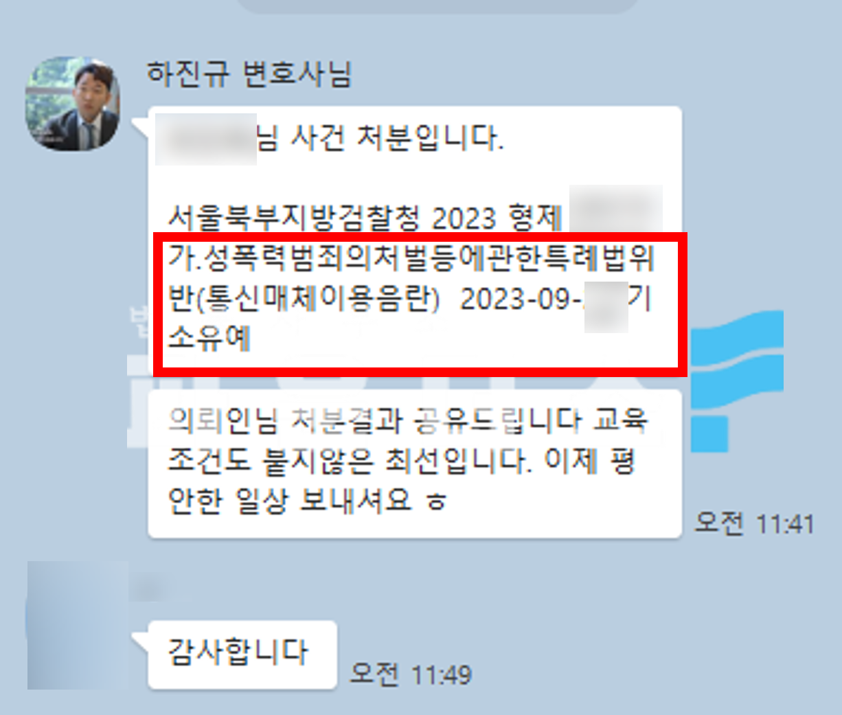 그 결과 의뢰인은 만남 어플 내에서 총 5회에 걸친 성적 발언에 대한 통매음 혐의에 있어 기소유예 처분으로 사건을 마무리할 수 있었습니다.