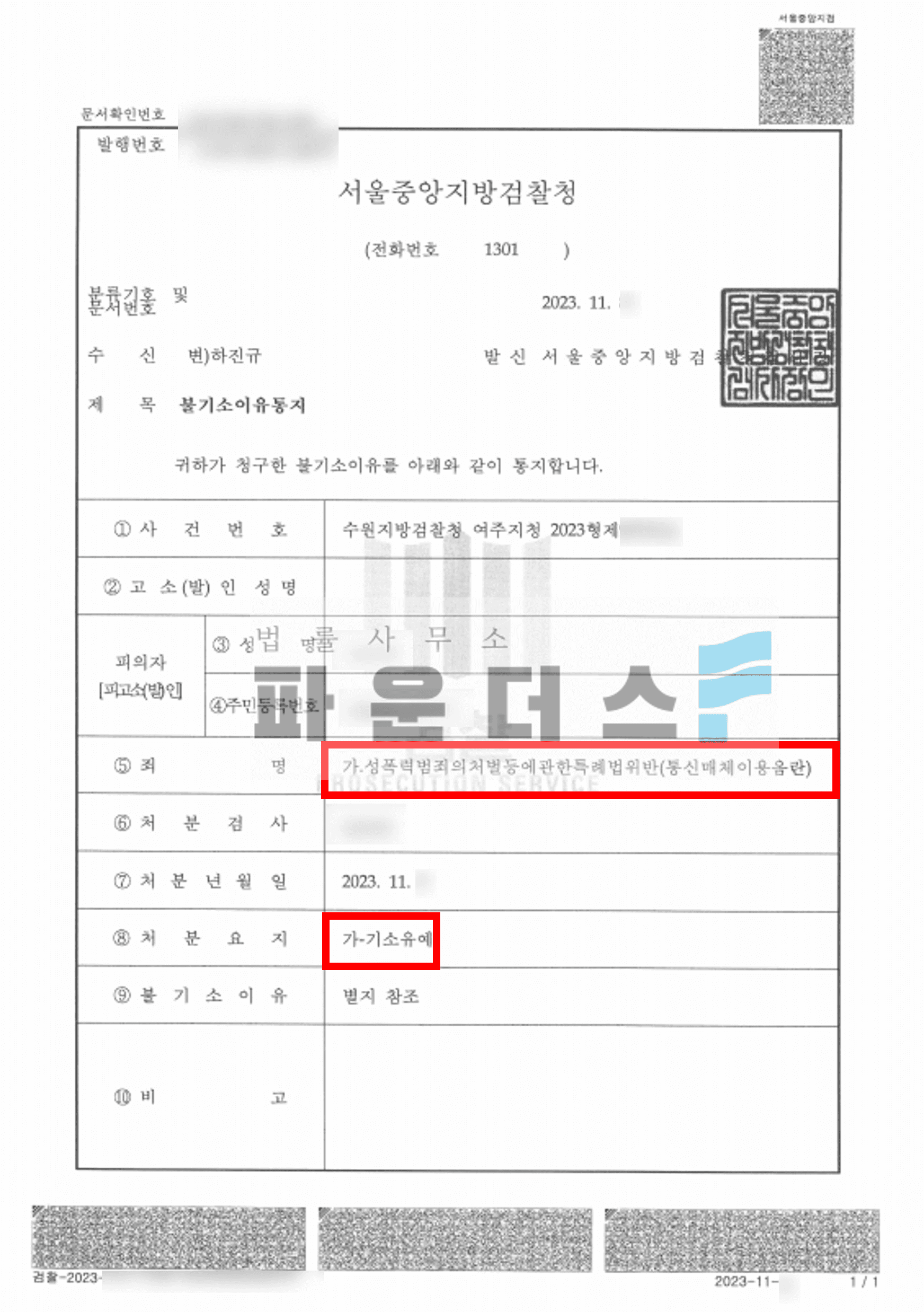 그 결과 의뢰인은 통매음 혐의에 있어 기소유예 처분으로 사건을 마무리 지을 수 있었습니다.