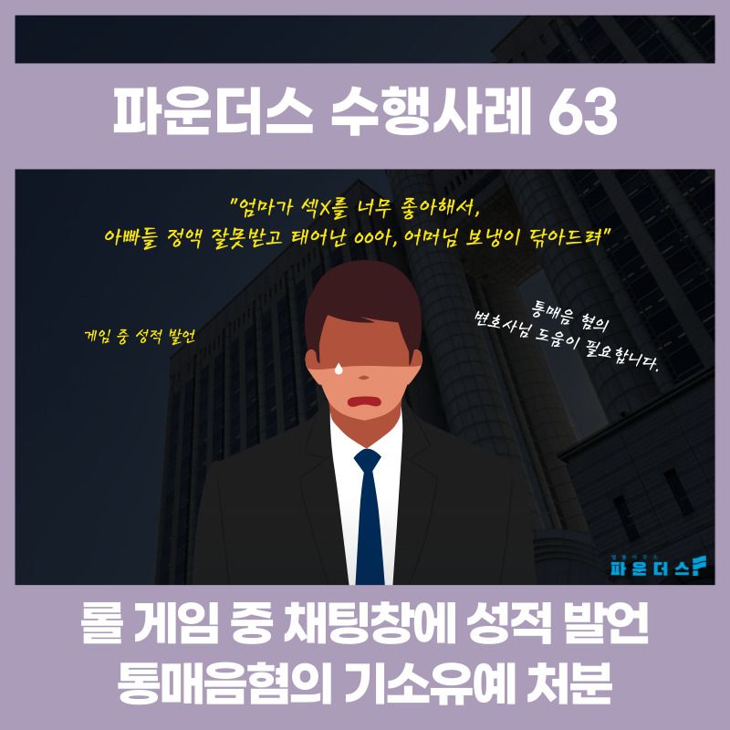롤 게임을 하던 중 상대에 패드립을 한 것으로 통매음 혐의에 연루된 의뢰인은 위기의 상황 속 파운더스 변호인의 조력을 요청하였습니다. 변호인은 의뢰인과 상담을 진행하며 발언의 내용과 문제가 되는 부분을 상대에 전송하게 된 경위 등에 대하여 상세하게 파악해 나가기 시작하였습니다.