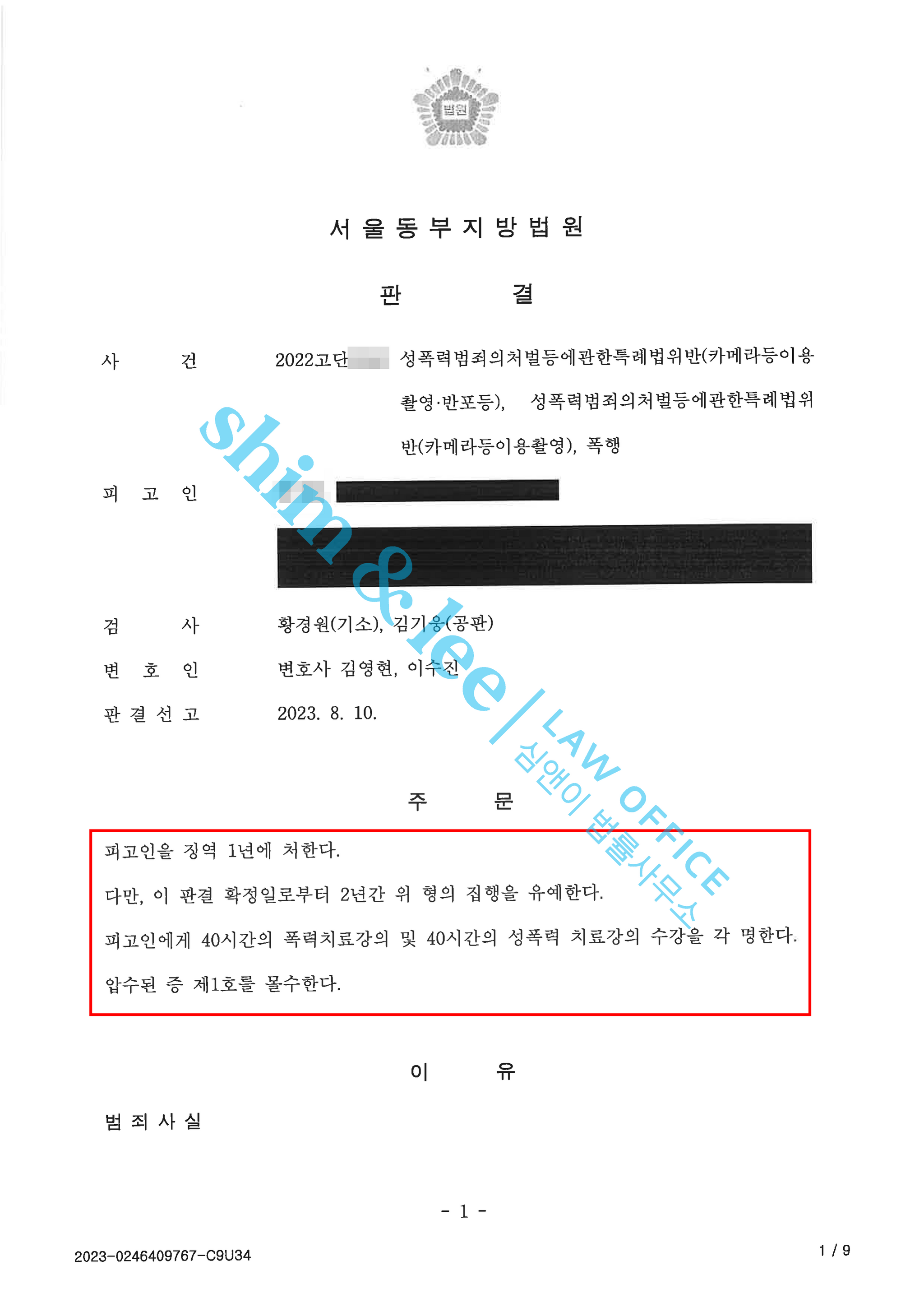 심앤이는 사건이 약식기소 처분으로 끝나버리지 않도록 가해자의 범행이 얼마나 악질적인지를 가해자의 카톡 표현을 가지고 하나하나 설명해 갔습니다. 데이트폭력 사건의 심각성과, 실제로 유출 위험이 있었던 상황에서의 피해자 심리상태를 자세히 어필하면서 사건이 정식기소가 되도록 유도했고, 결국 검사님 설득에 성공해 정식기소 구공판 처분을 이끌어낼 수 있었습니다.