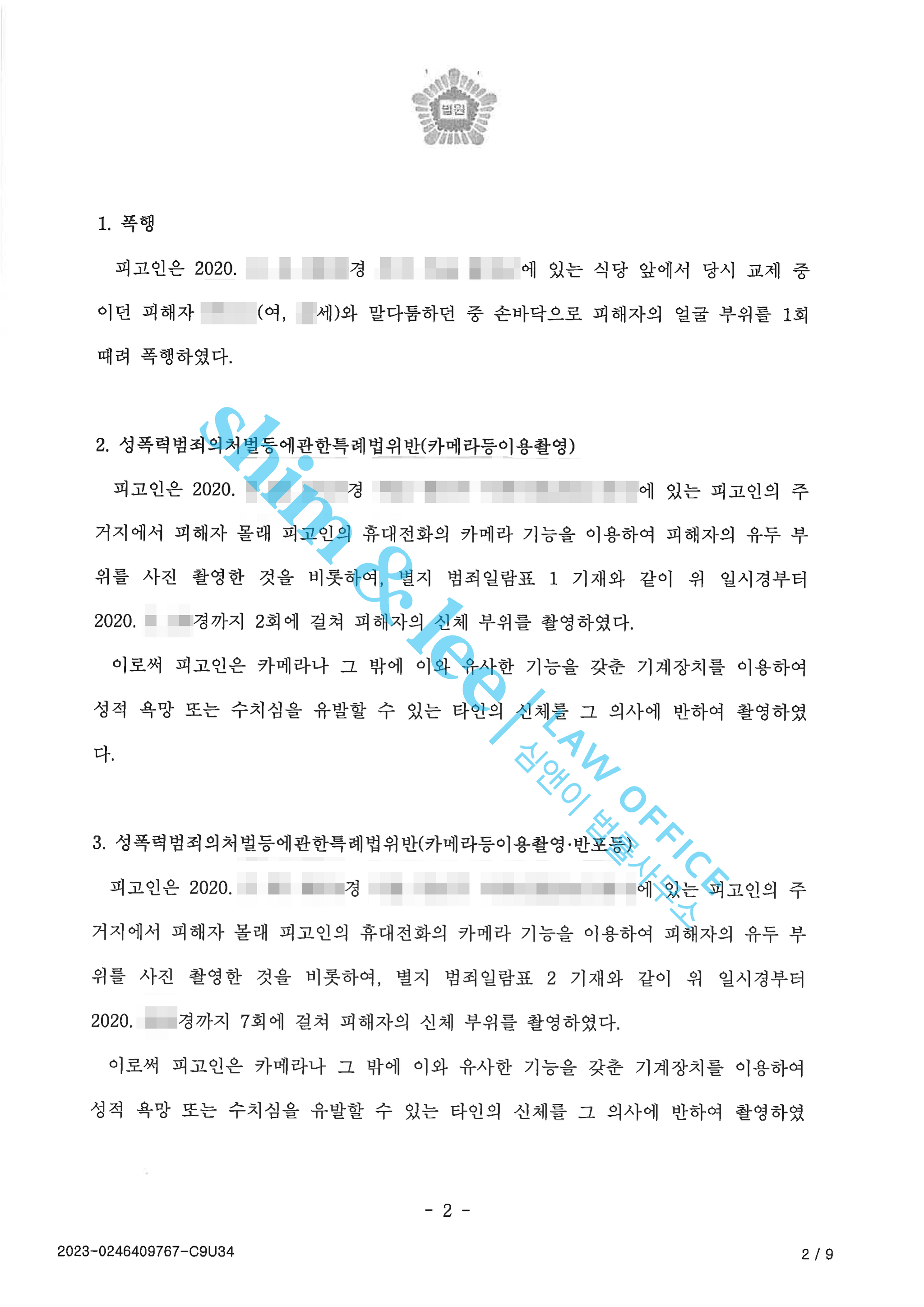 불법촬영(카메라등이용촬영)에서 피해자의 동의의사를 판단하는 대법원 판결을 인용해서 피해자가 촬영에 동의한 것으로 볼 수 없다는 점을 법리적으로 조목조목 어필했습니다.