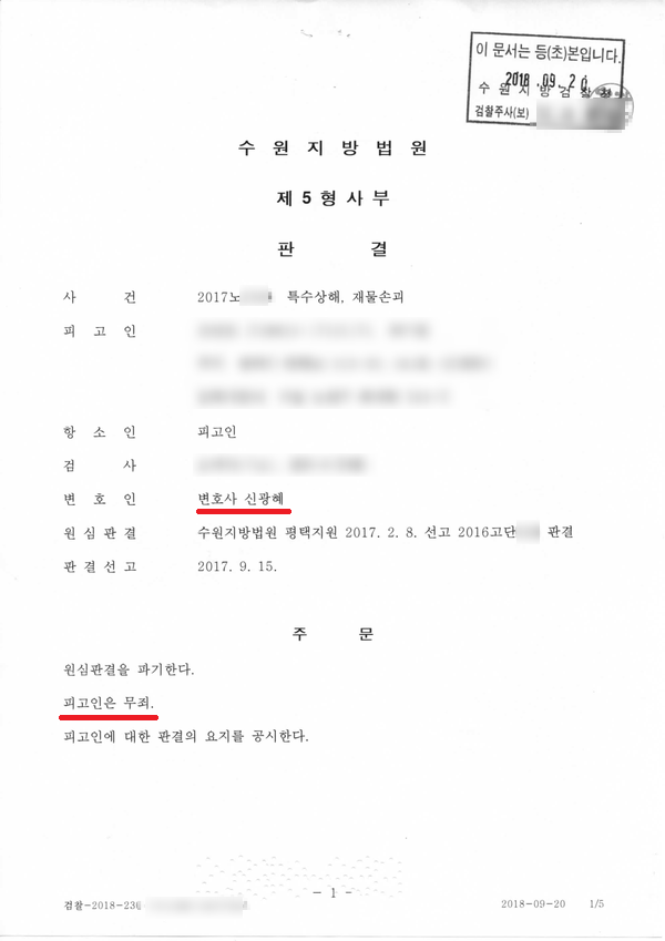 저에 대한 의의로는 제 첫 무죄 사건이었습니다. 저는 피고인을 변론해주면서도 유죄일 것이라고 생각하되 그저 제 직업적 역할을 했던 것일 뿐인데, 무죄가 나와서 의아하고 신기했던 기억입니다. 정식으로 개업을 한지도 1~2개월 정도밖에 되지 않았을 때 맡은 사건인데 무죄가 나와서 한 20분 정도 기분이 좋았던 기억입니다.