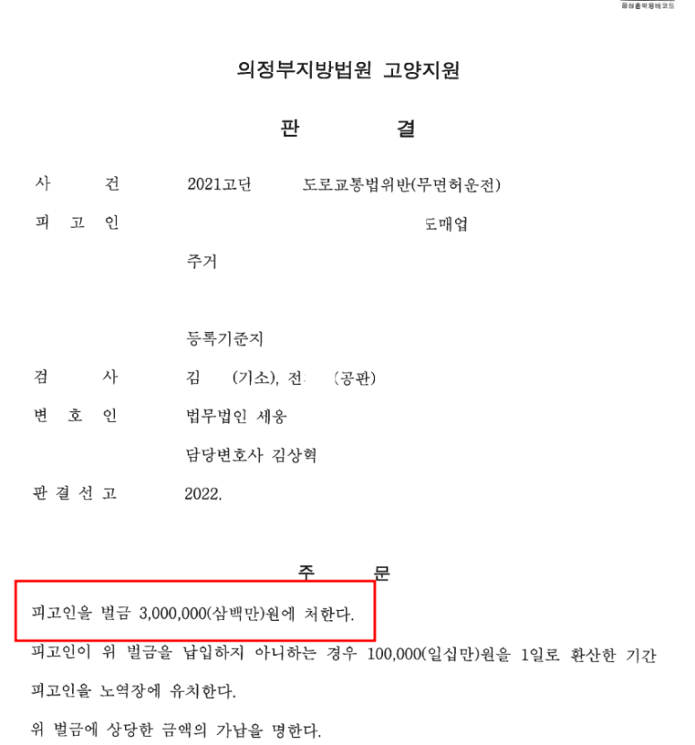 다행히 법원에서는 변호인의 변론과 의뢰인의 노력을 고려하여 300만원의 벌금형을 선고하였습니다.