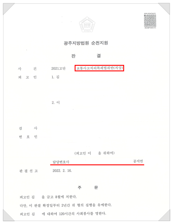 혐의 : 교통사고처리특례법위반(치상)