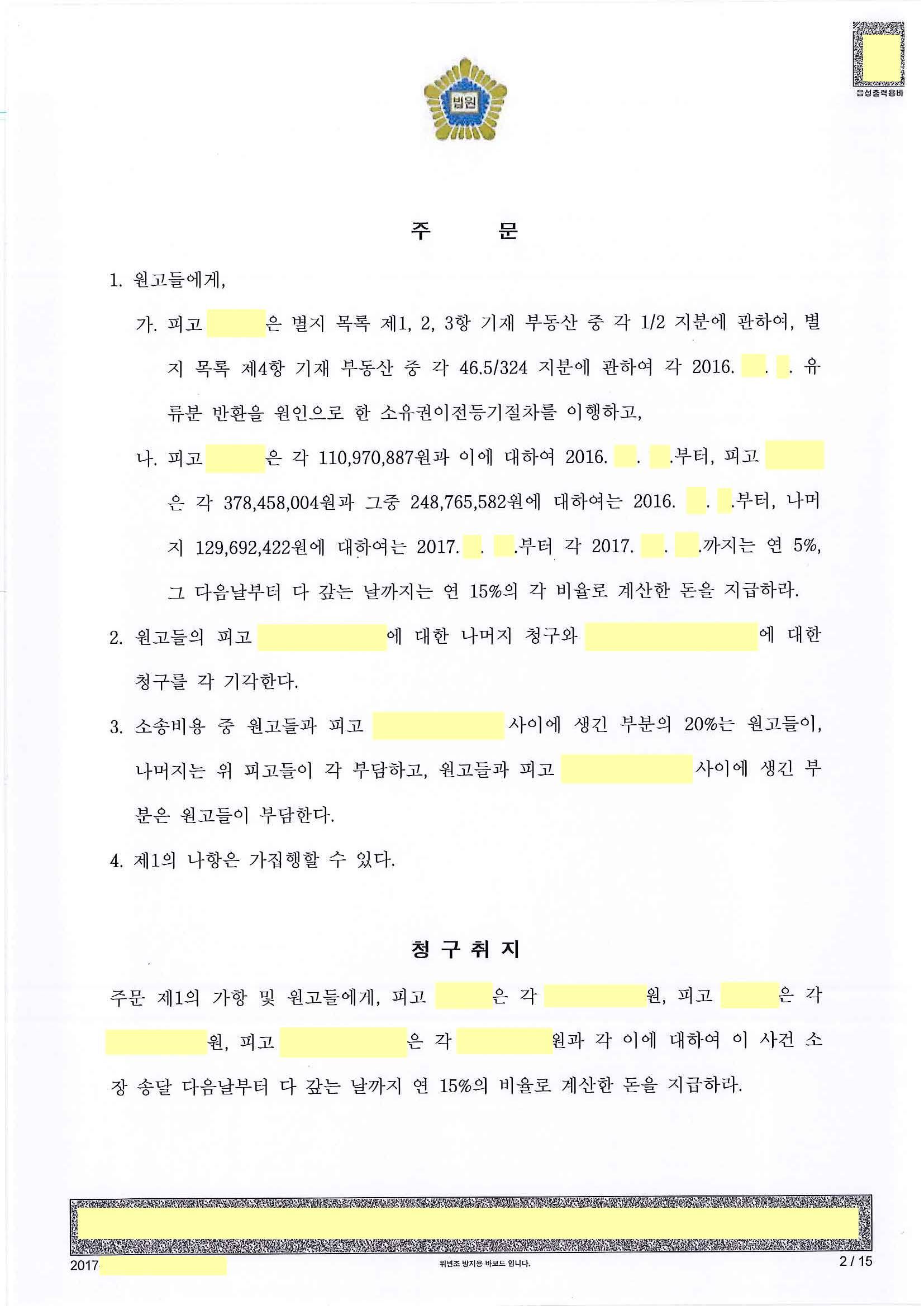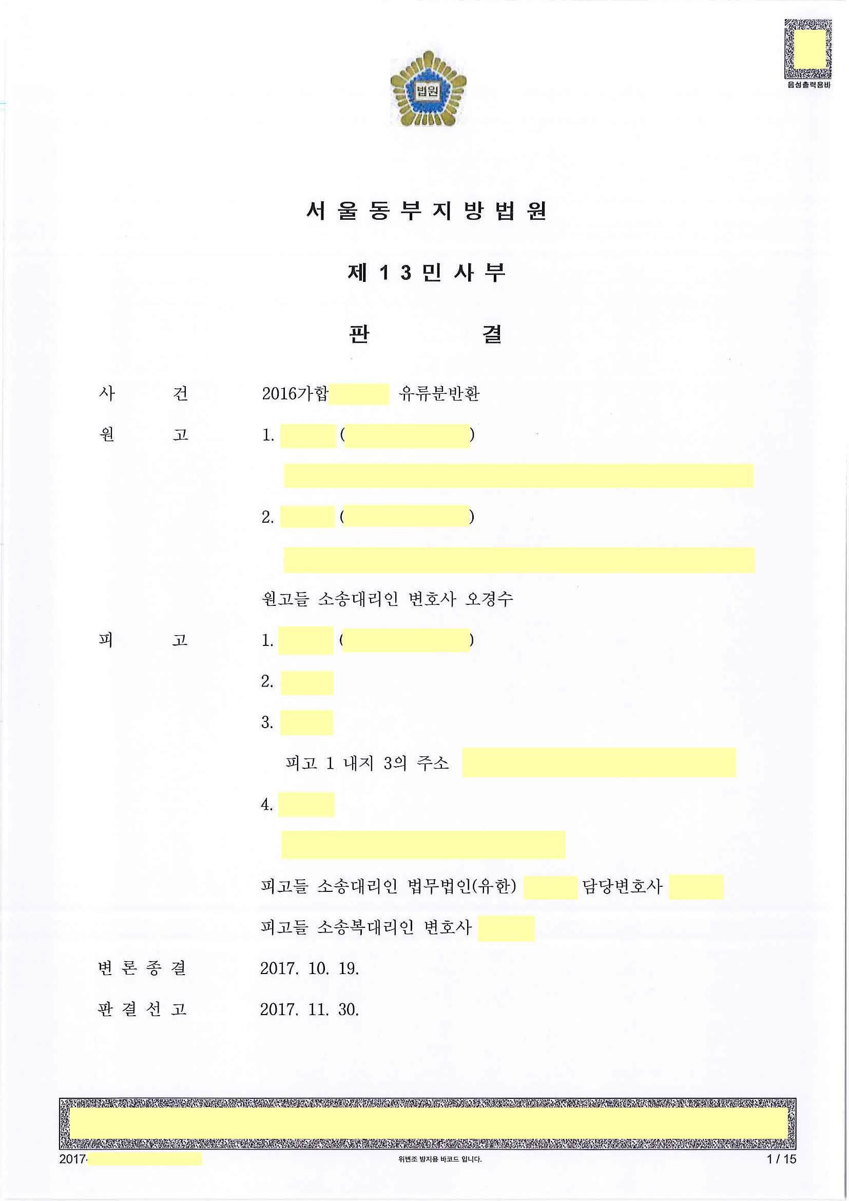 원고 일부 승소로 만족스럽게 마무리가 된 사안입니다.