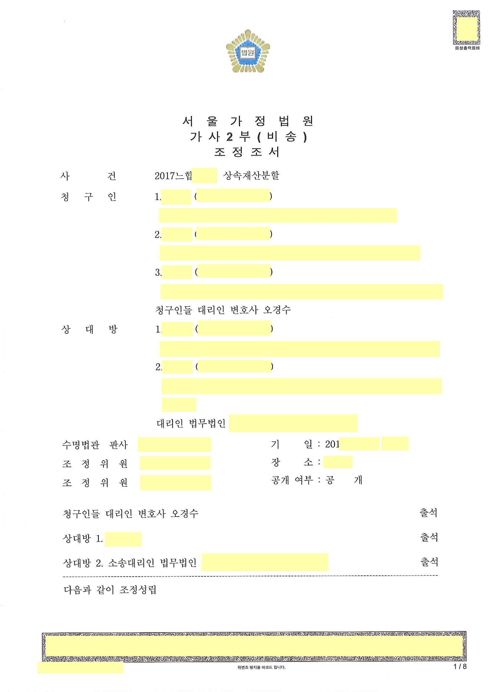 조정 성립으로 성공적으로 마무리가 된 사안입니다.