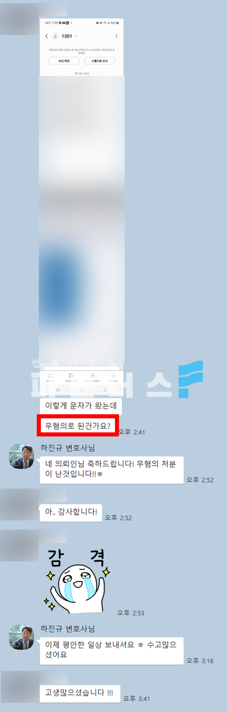 마지막으로 앞서 파악한 내용을 변호인 의견서에 작성하여 무죄 주장에 힘을 싣는 변론을 하며 적극적인 조력을 드렸습니다.