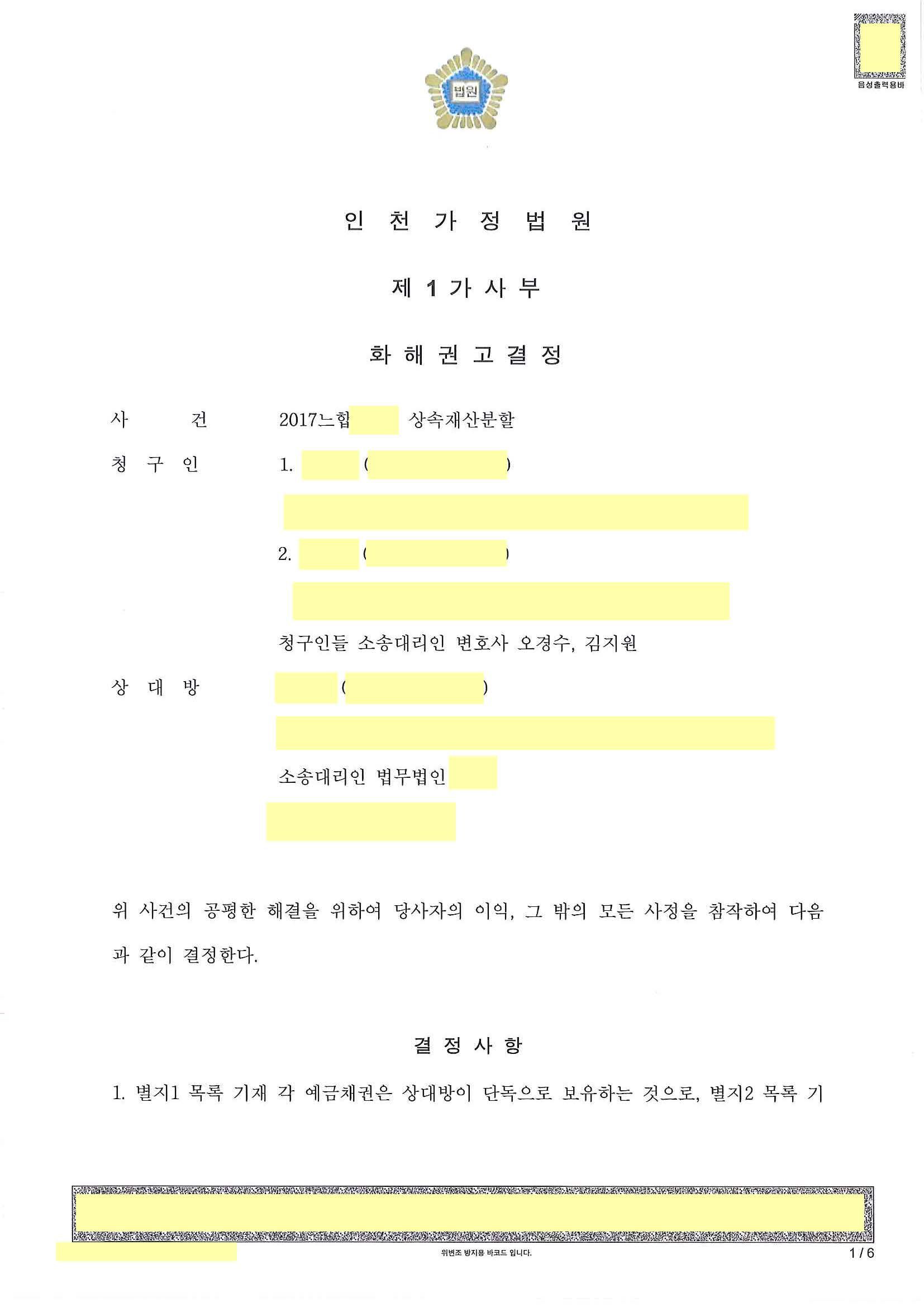 청구인 청구 인용 및 유류분 대폭 감쇄로 성공적으로 마무리가 된 사안입니다.