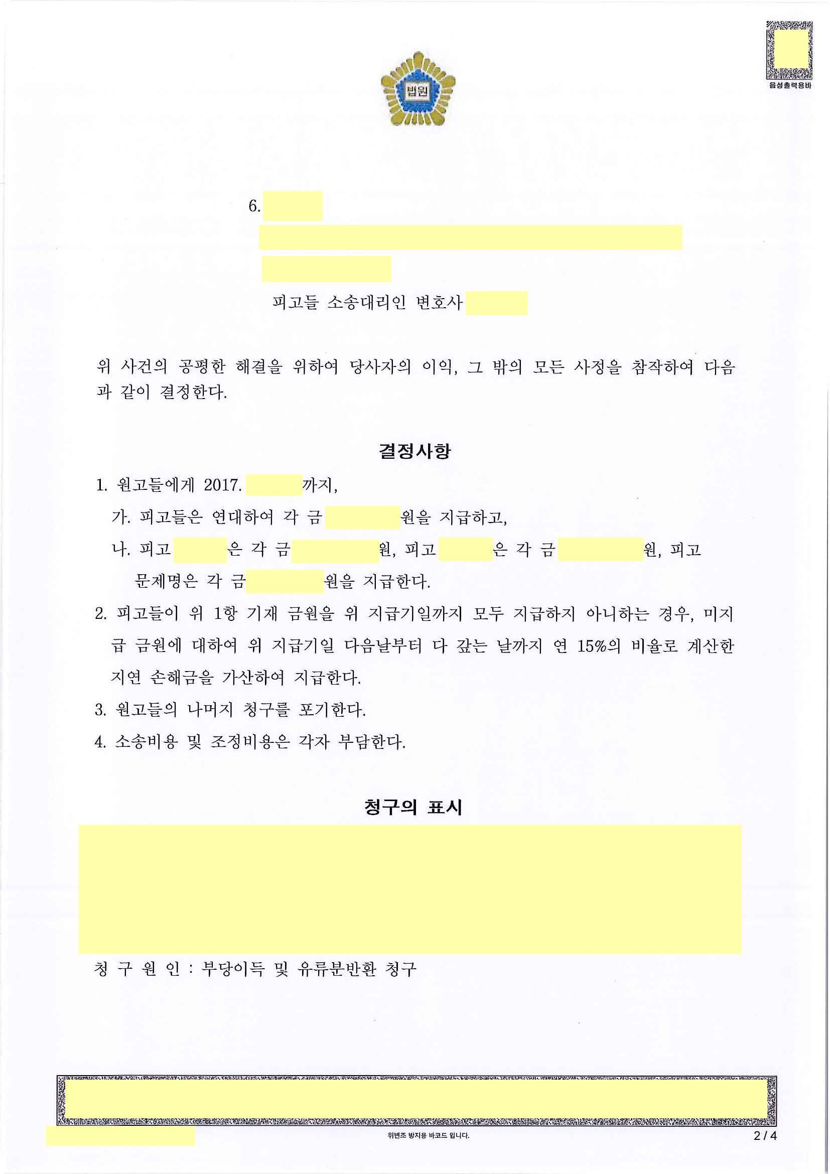 조정 성립으로 성공적으로 마무리가 된 사안입니다.