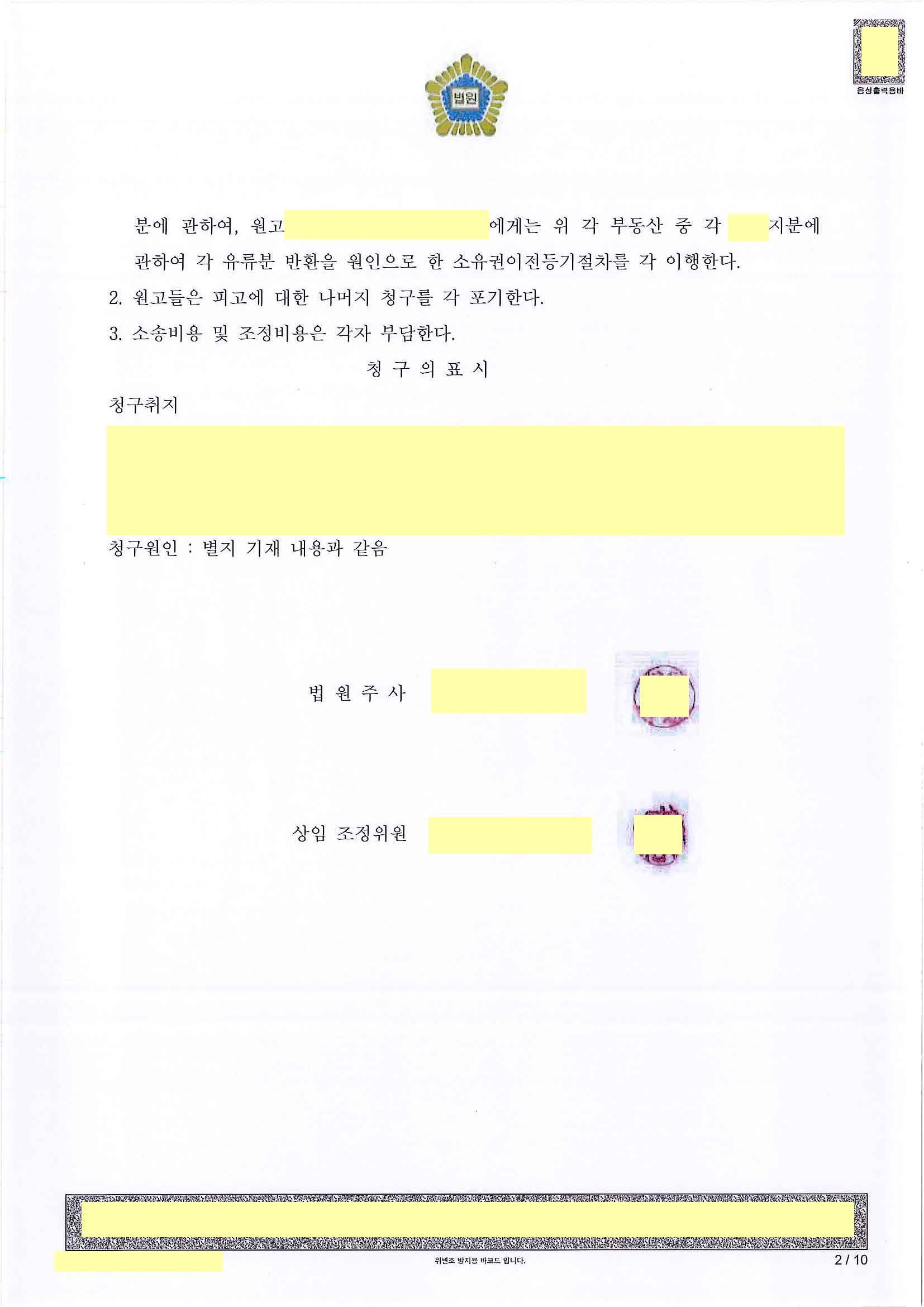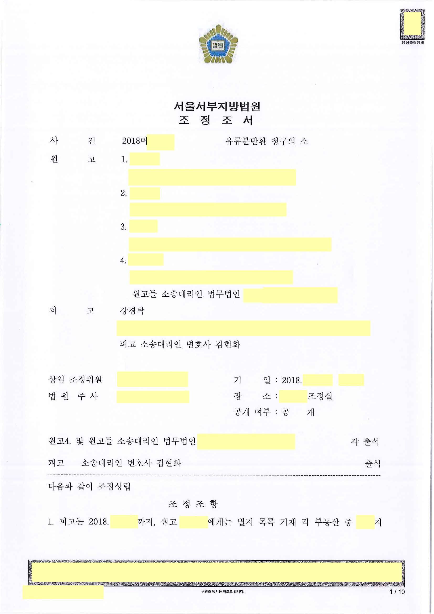조정 성립으로 성공적으로 마무리가 된 사안입니다.