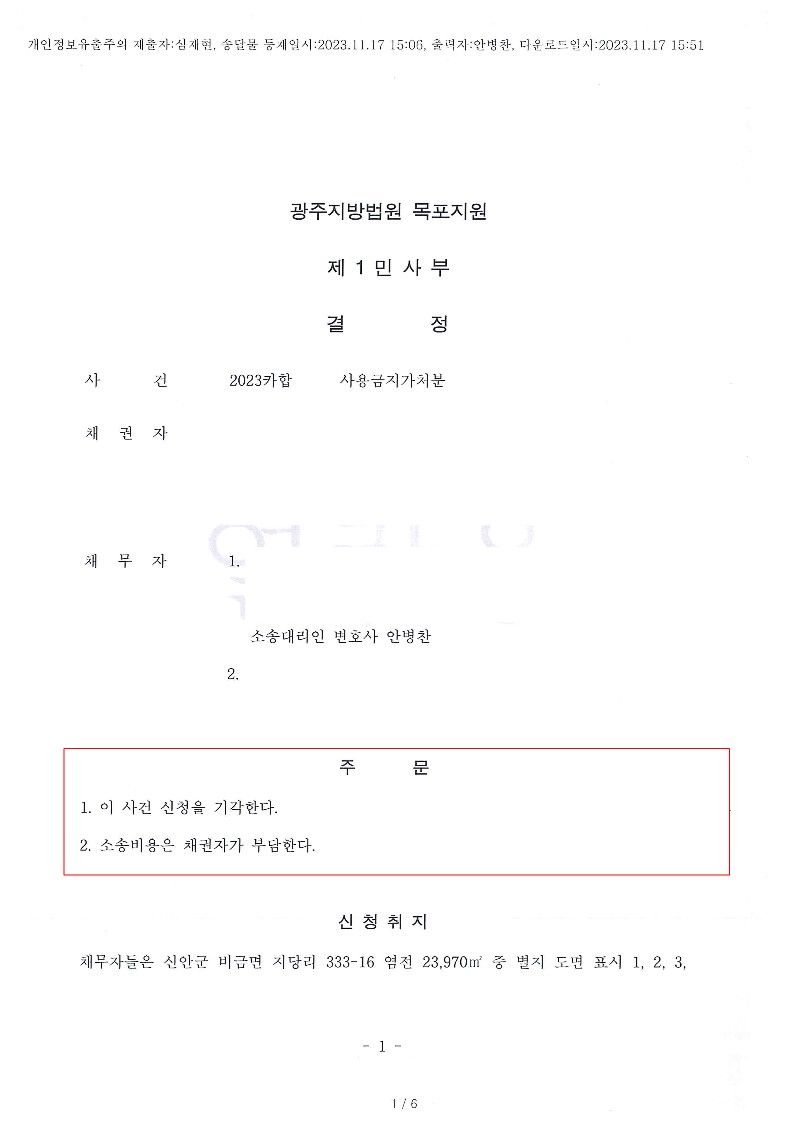 의뢰인은 사용처분금지가처분은 보전필요성이 인정되지 않아 기각결정을 받았습니다.