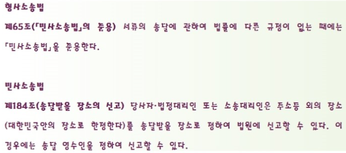 이 규정들에 따라 송달장소와 송달영수인을 지정하여 신고하시면 됩니다.
