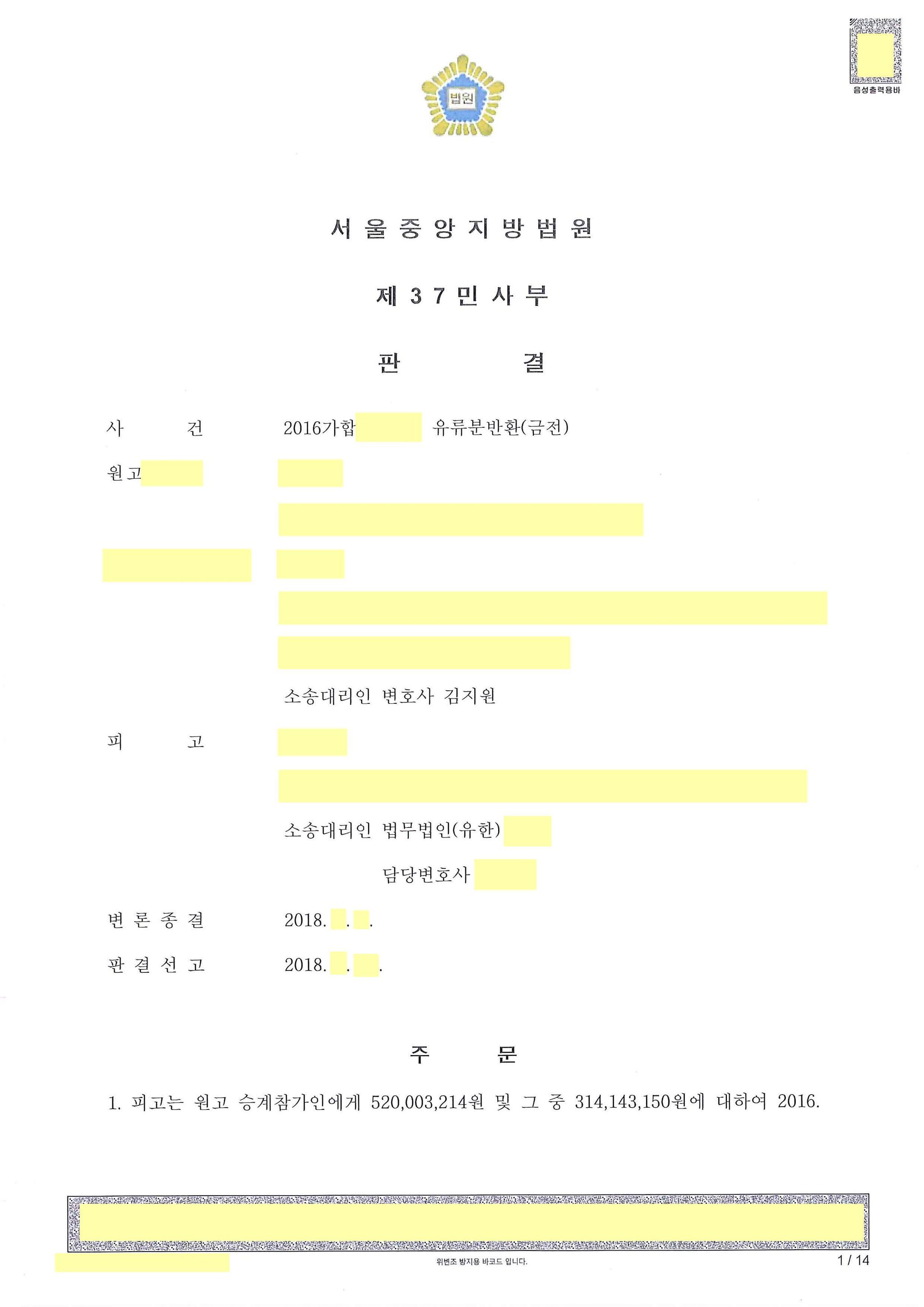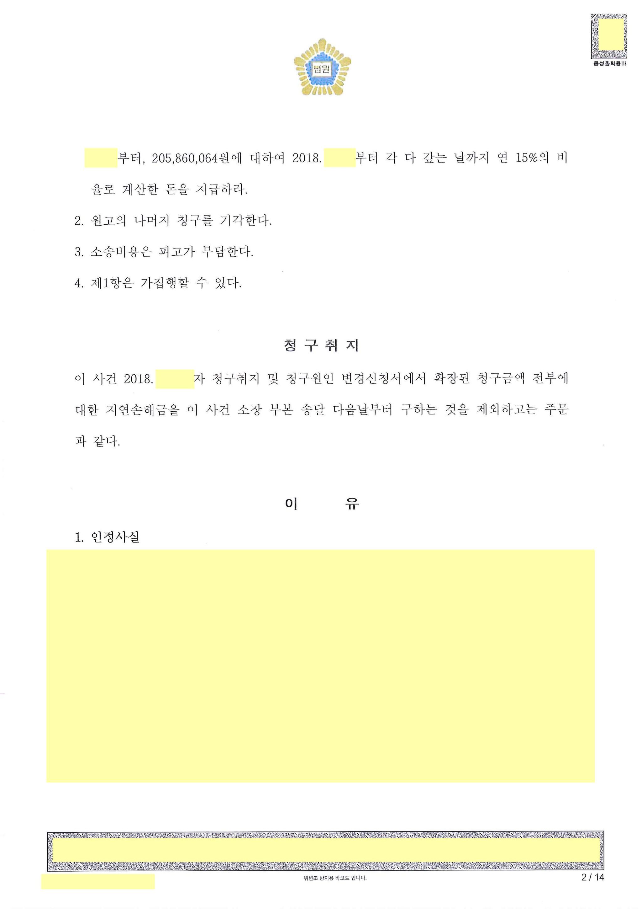 원고 승소(지연이자 기산점 부분을 제외하고는 청구취지와 주문이 동일)