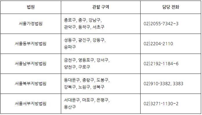 서울의 경우 협의이혼 사건의 관할법원은 해당구역 법원의 관할에 속합니다. 따라서 서울 송파구에 살고 있는 부부가 협의이혼을 하기 위해서는 서울 가정법원이 아닌 서울 동부지방법원에서 협의이혼절차를 밟아야 합니다. 물론 협의이혼절차가 되지 않아 재판상 이혼을 하는 경우에는 서울가정법원이 관할 법원이 되죠.