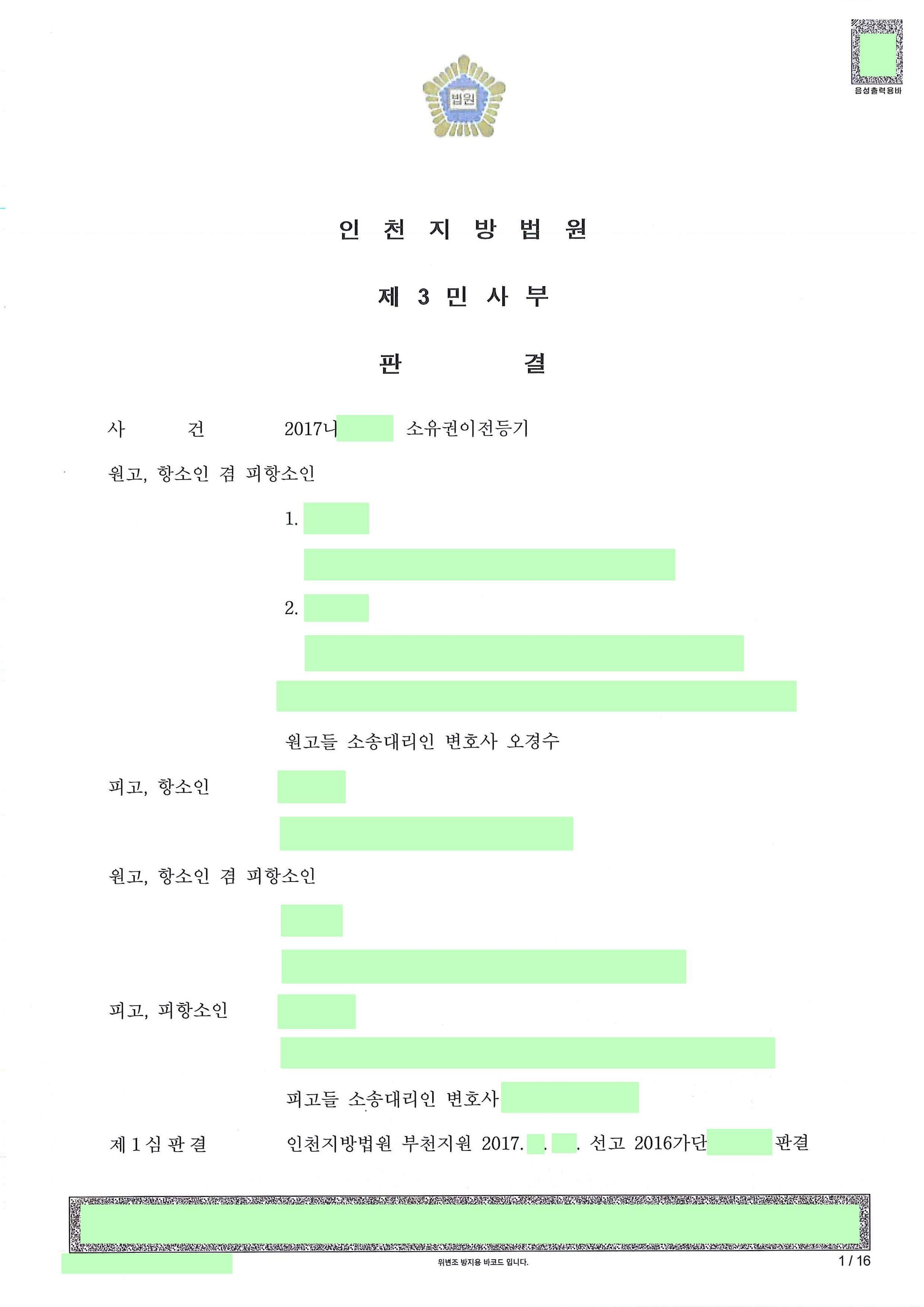 원고 및 피고들은 인천지방법원 부천지원 2016가단******호 소유권이전등기 사건의 당사자. 본 소송은 위 1심 소송의 항소심. 원고들은 1심의 판단 중 부당이득반환 일부 패소 부분 항소, 피고들은 소유권이전등기말소 부분 항소한 사안입니다.