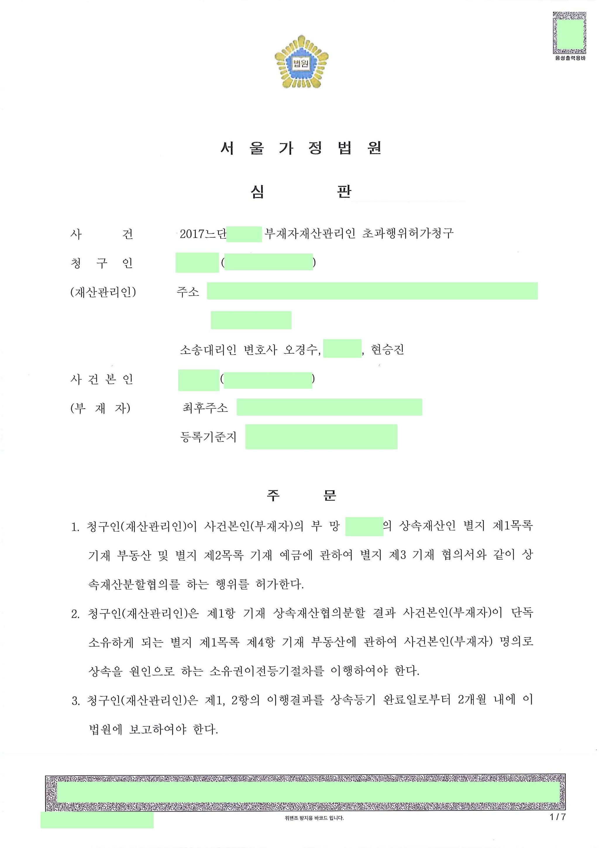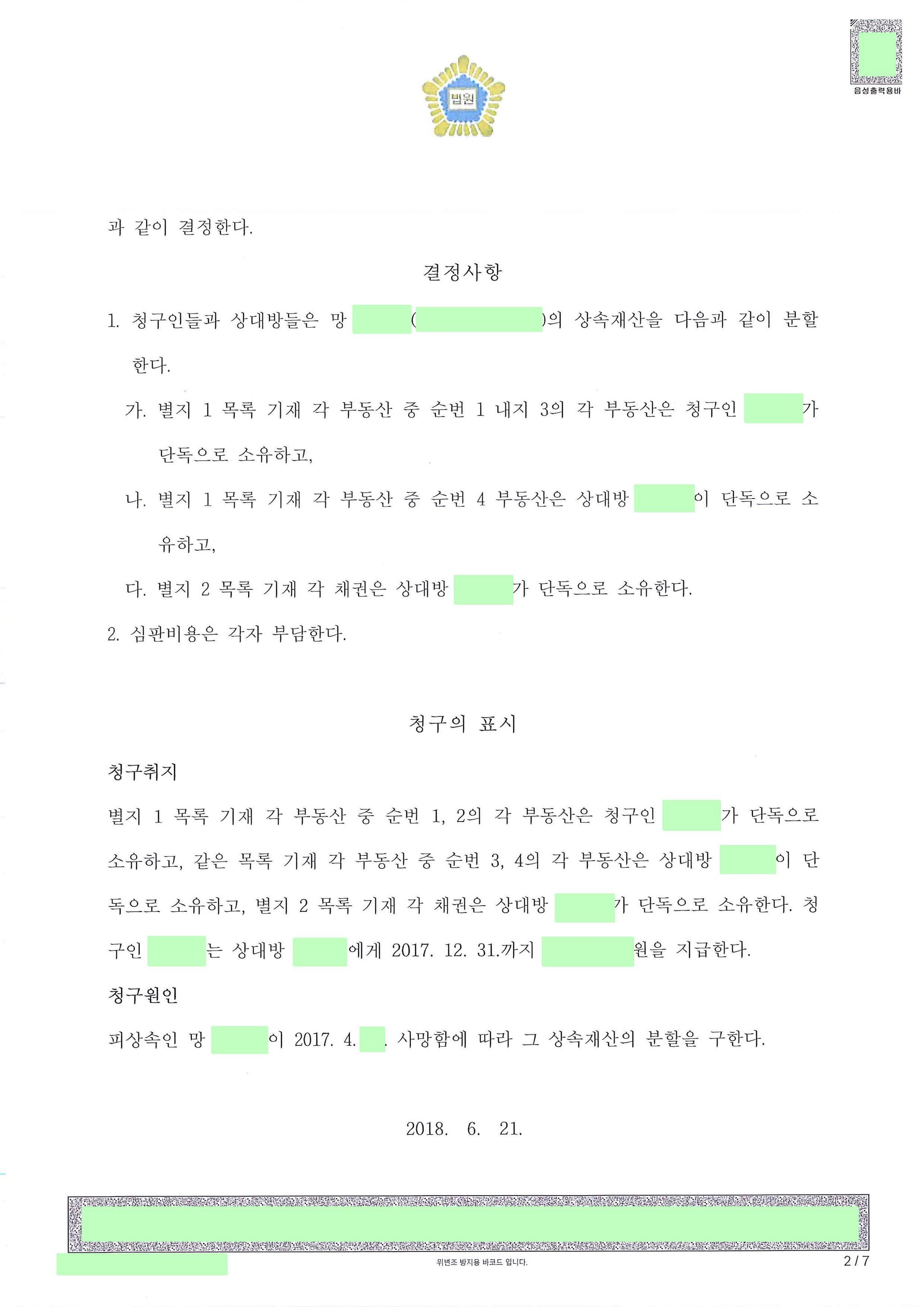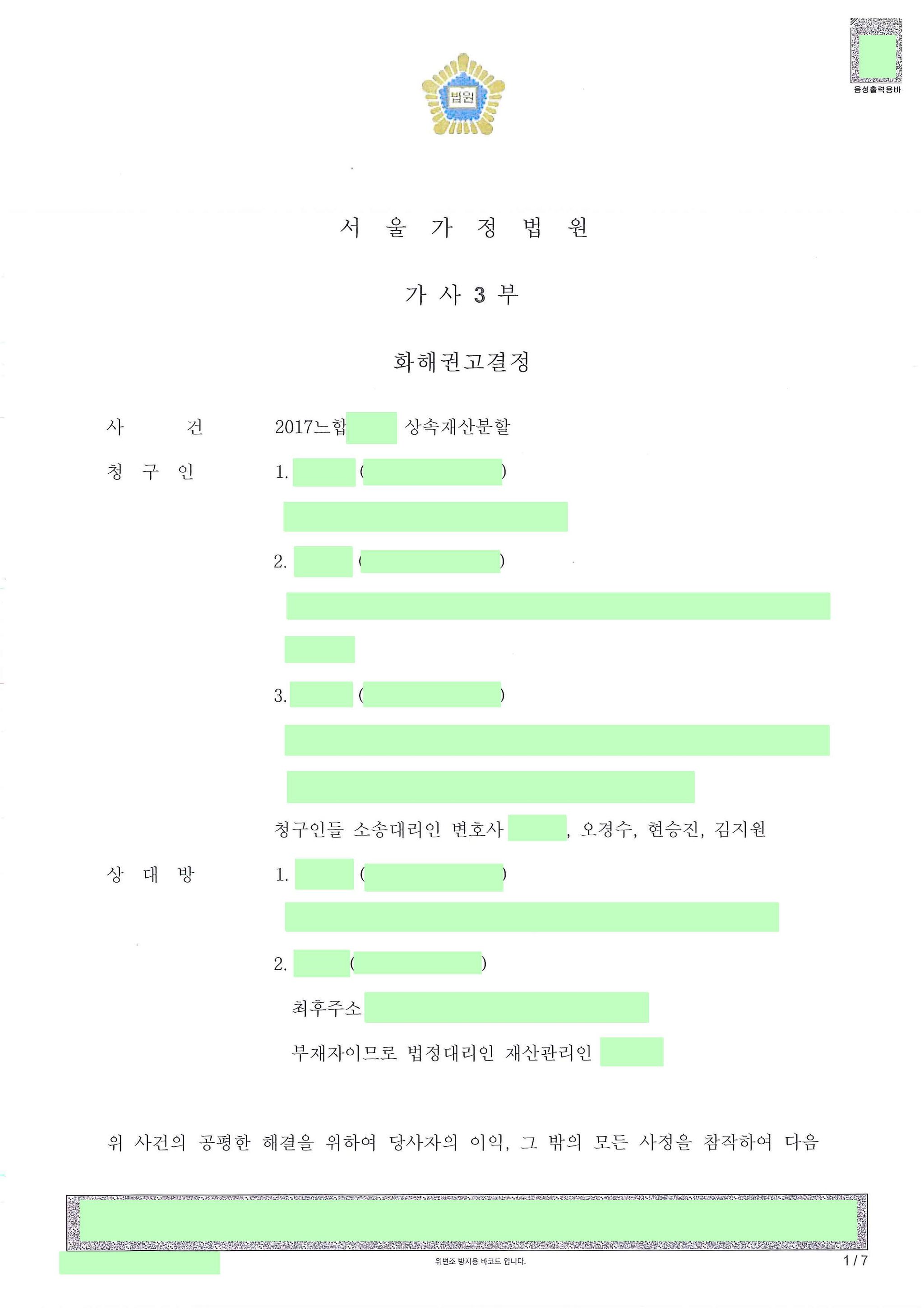 화해권고 확정 (상속재산정리 성공) 마무리가 된 사안입니다.