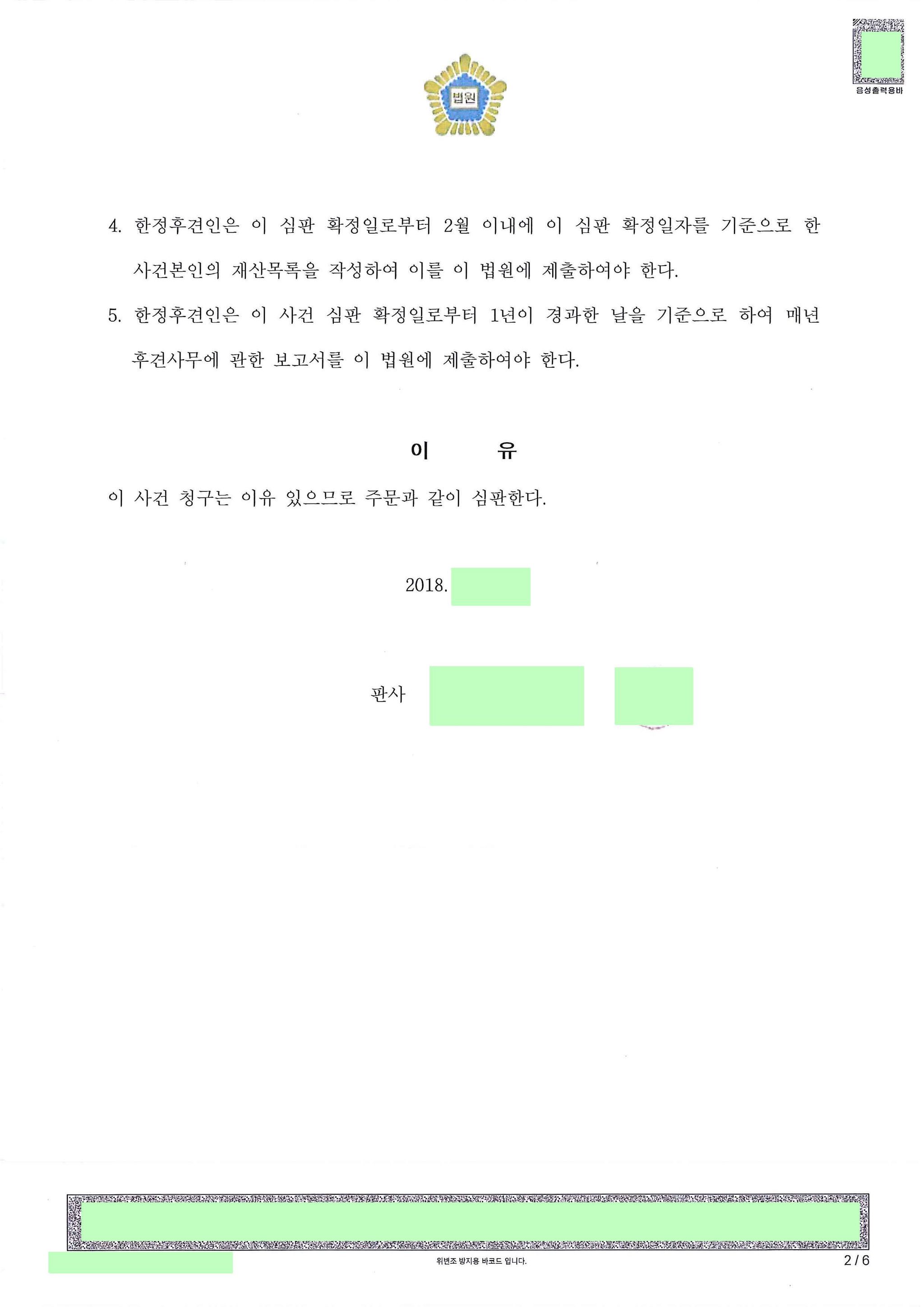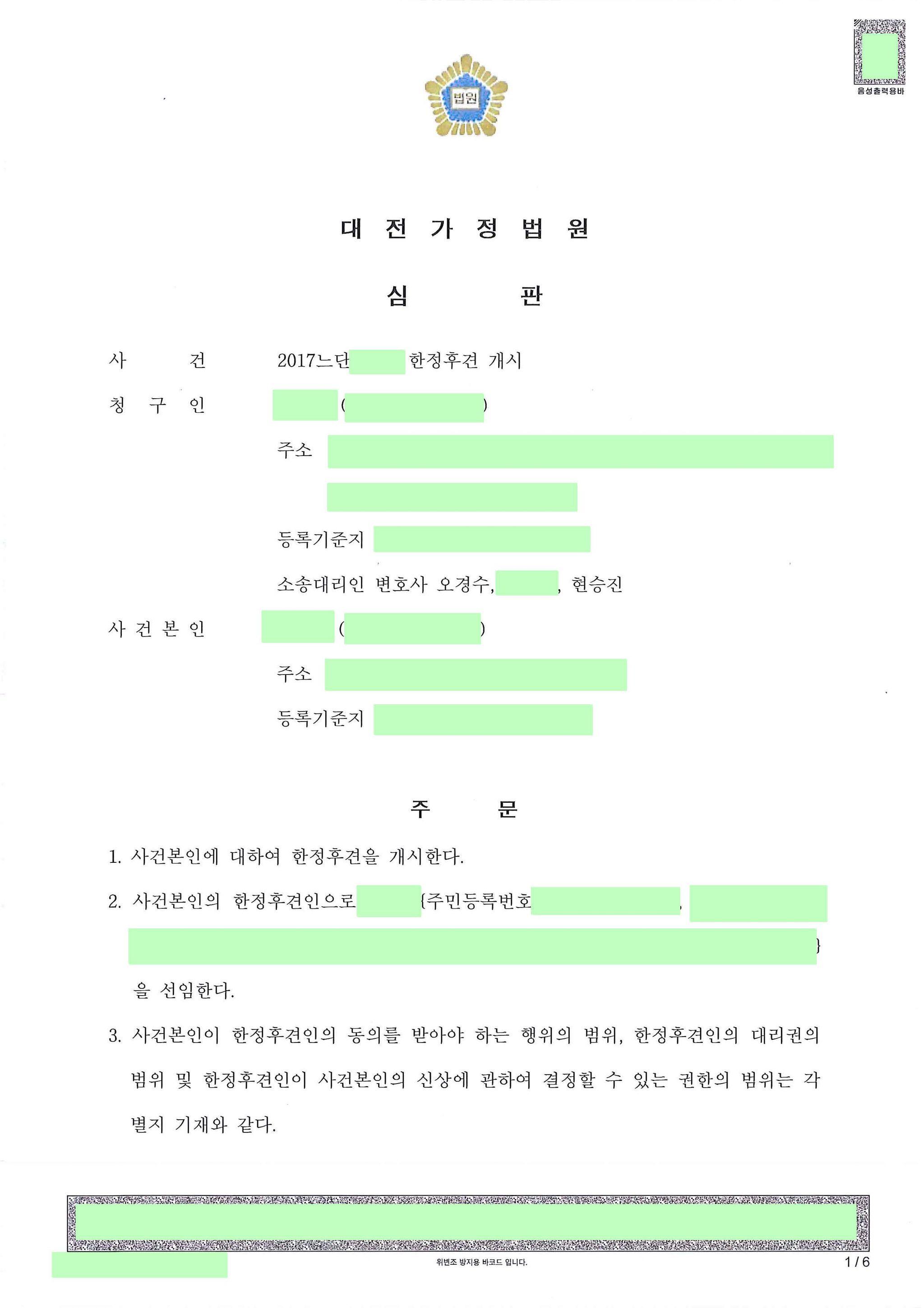 청구인은 사건본인의 자(子). 사건본인은 조현병 환자. 사리분별력이 떨어지는 상황을 사건본인의 형제들이 이용하고 있는 상황. 재산 유출을 우려하던 청구인이 한정후견을 신청했던 사안입니다.