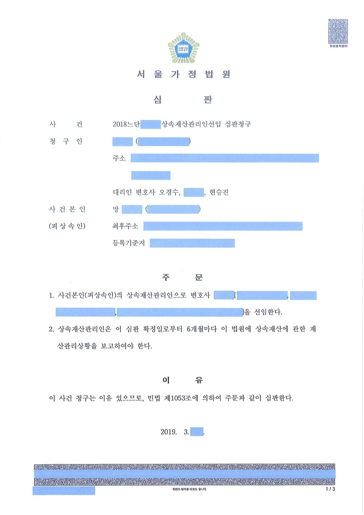 청구인의 청구 인용되어 성공적으로 마무리가 된 사안입니다.