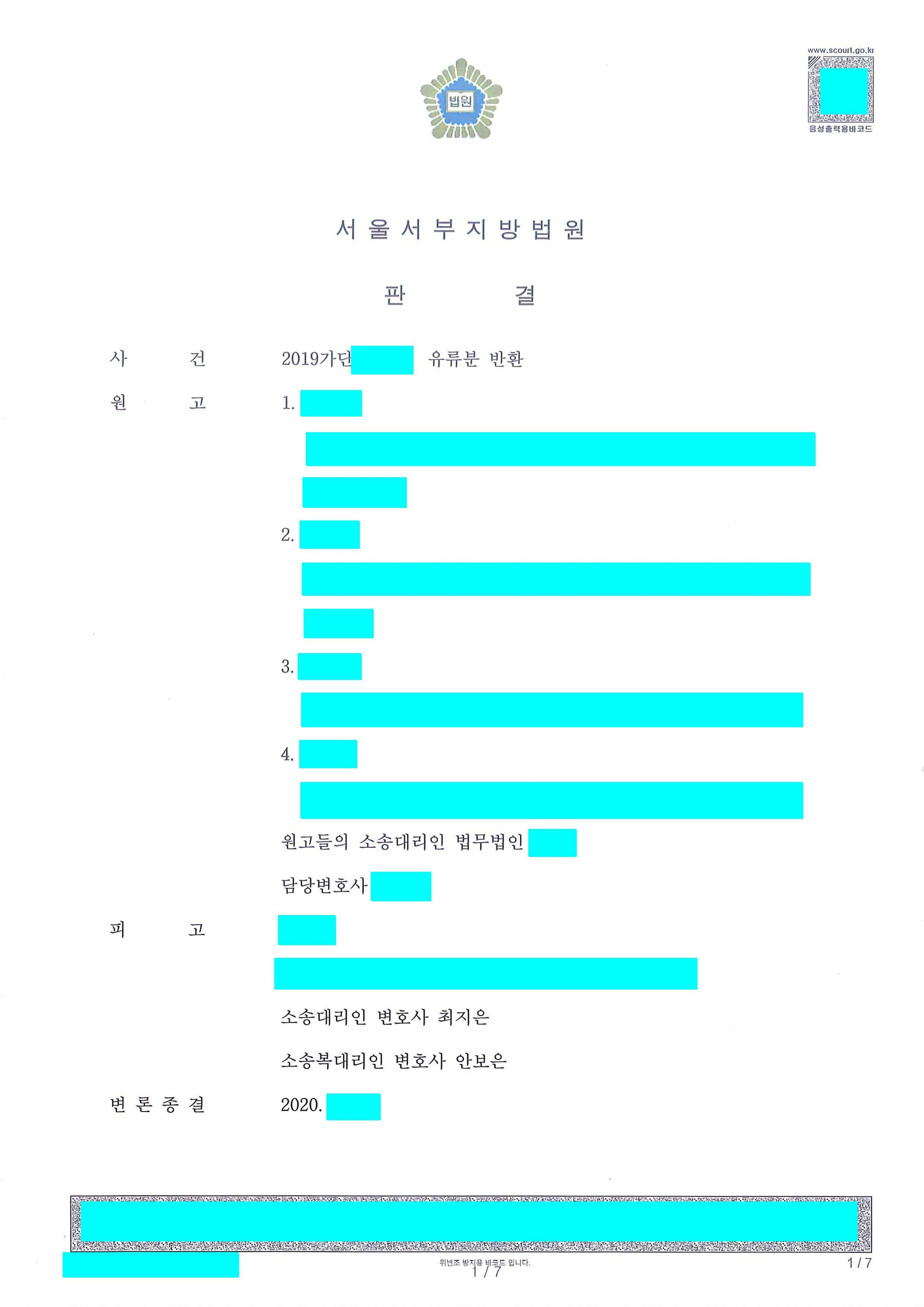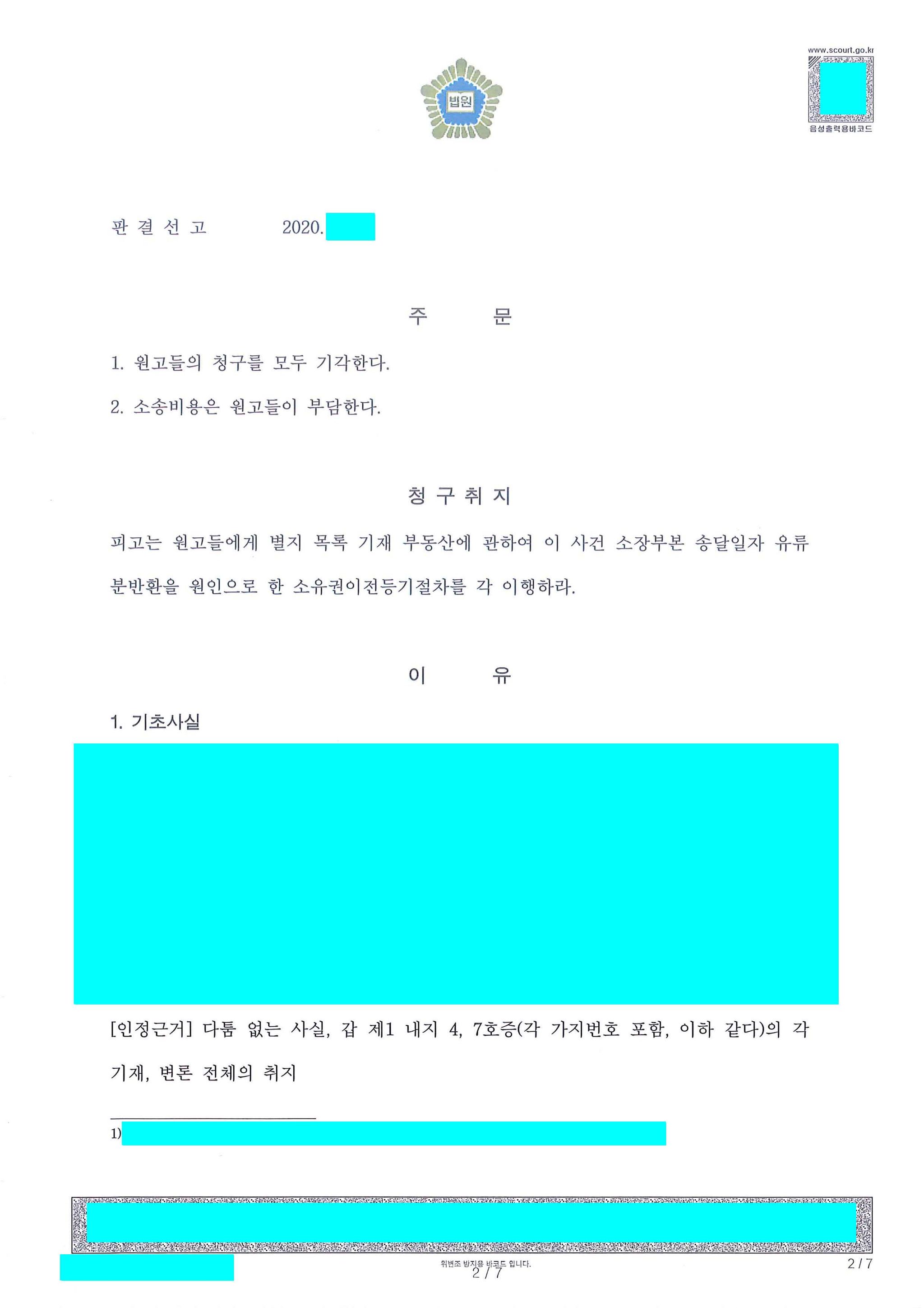 피고 승소되어 성공적으로 마무리가 된 사안입니다.