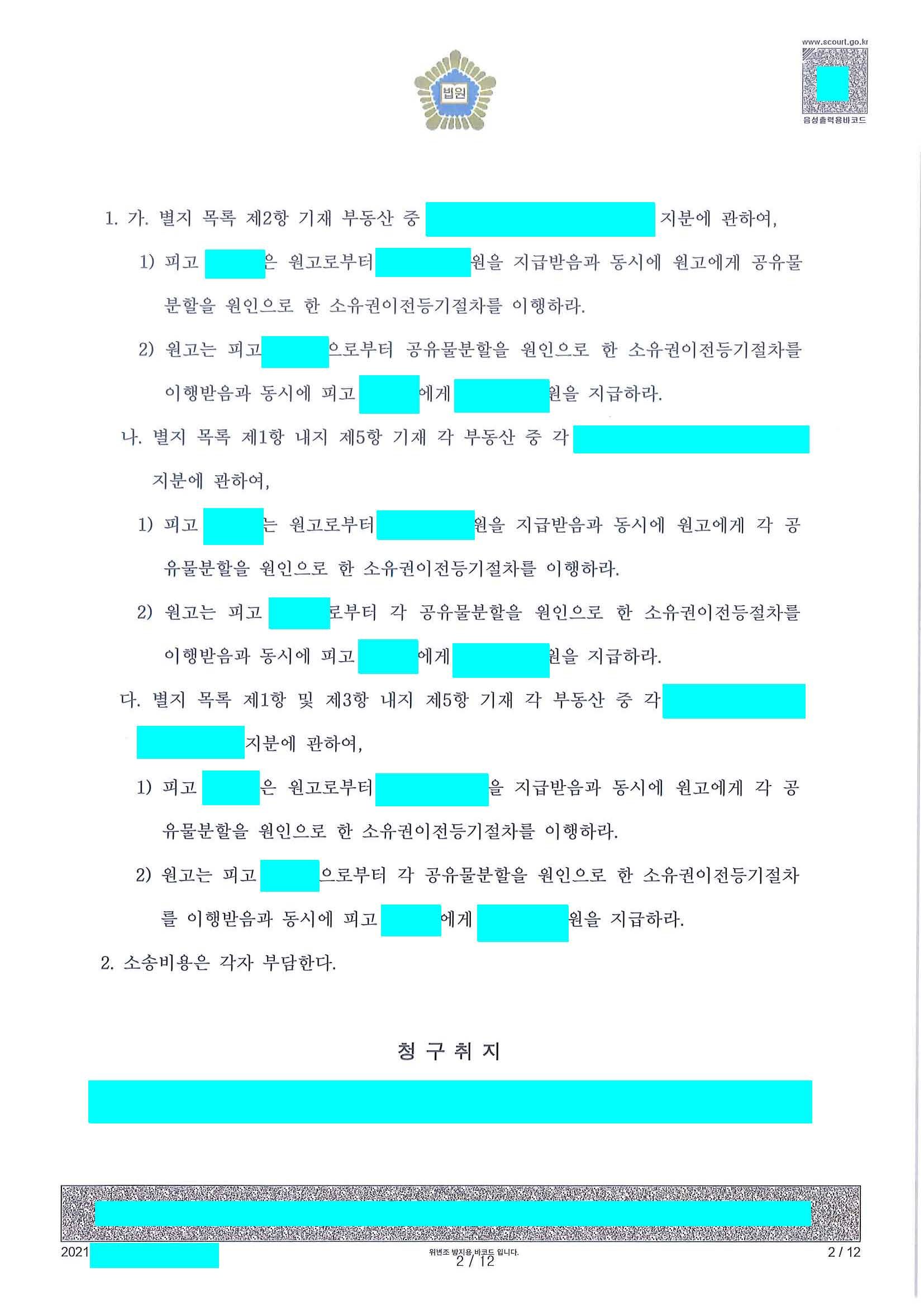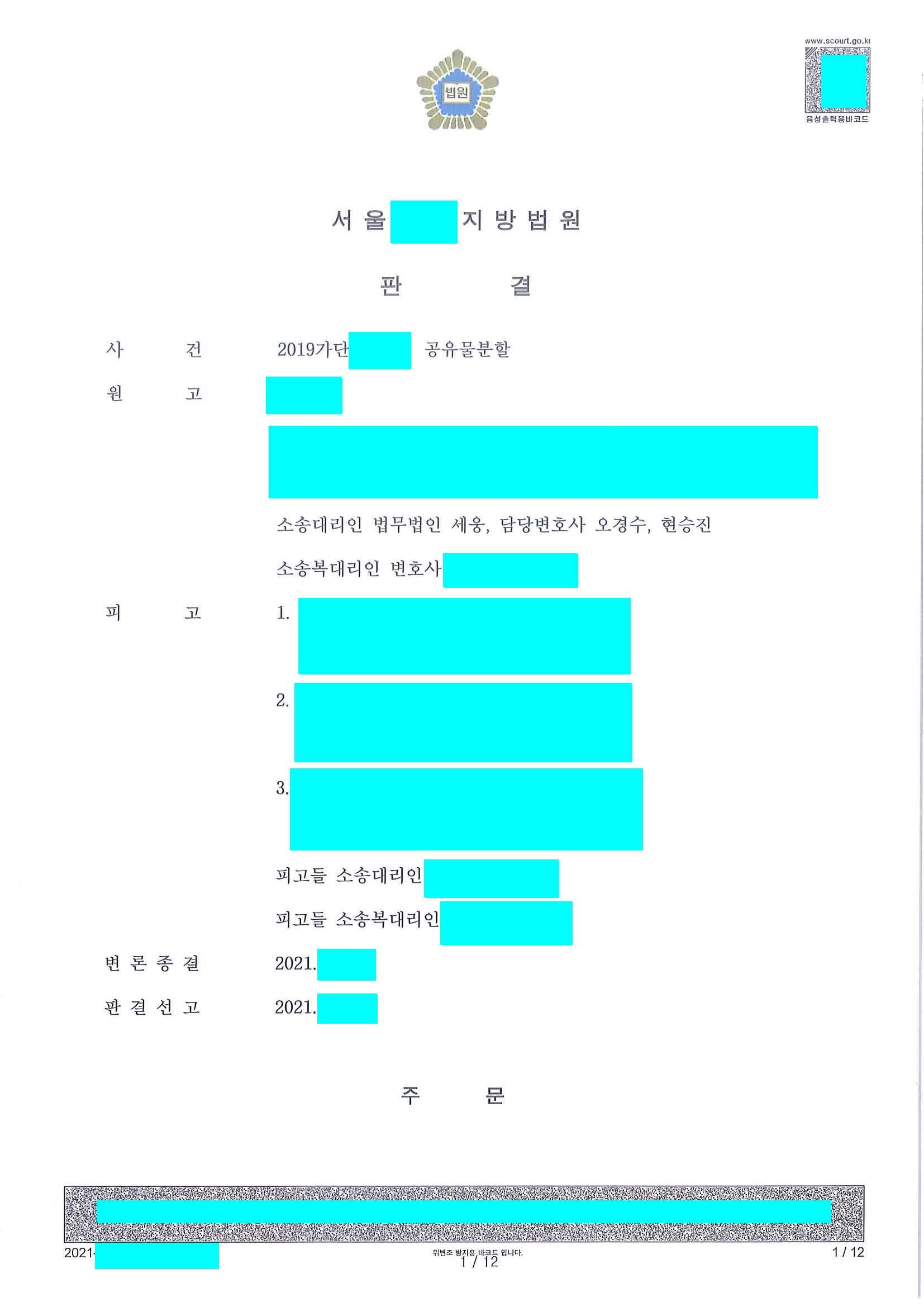 원고 승소 성공적으로 마무리가 된 사안입니다.
