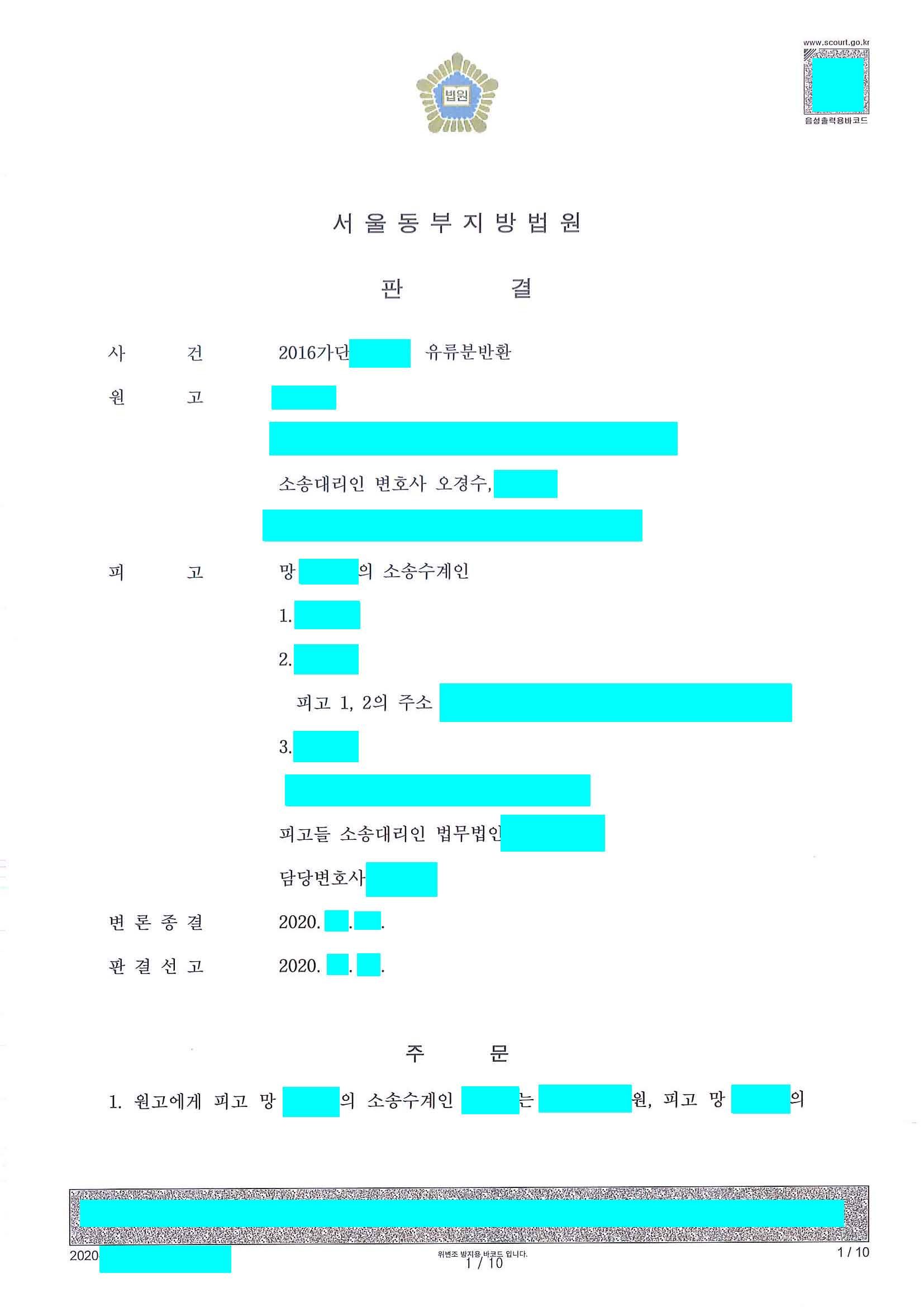 원고 승소로 성공적으로 마무리가 된 사안입니다.