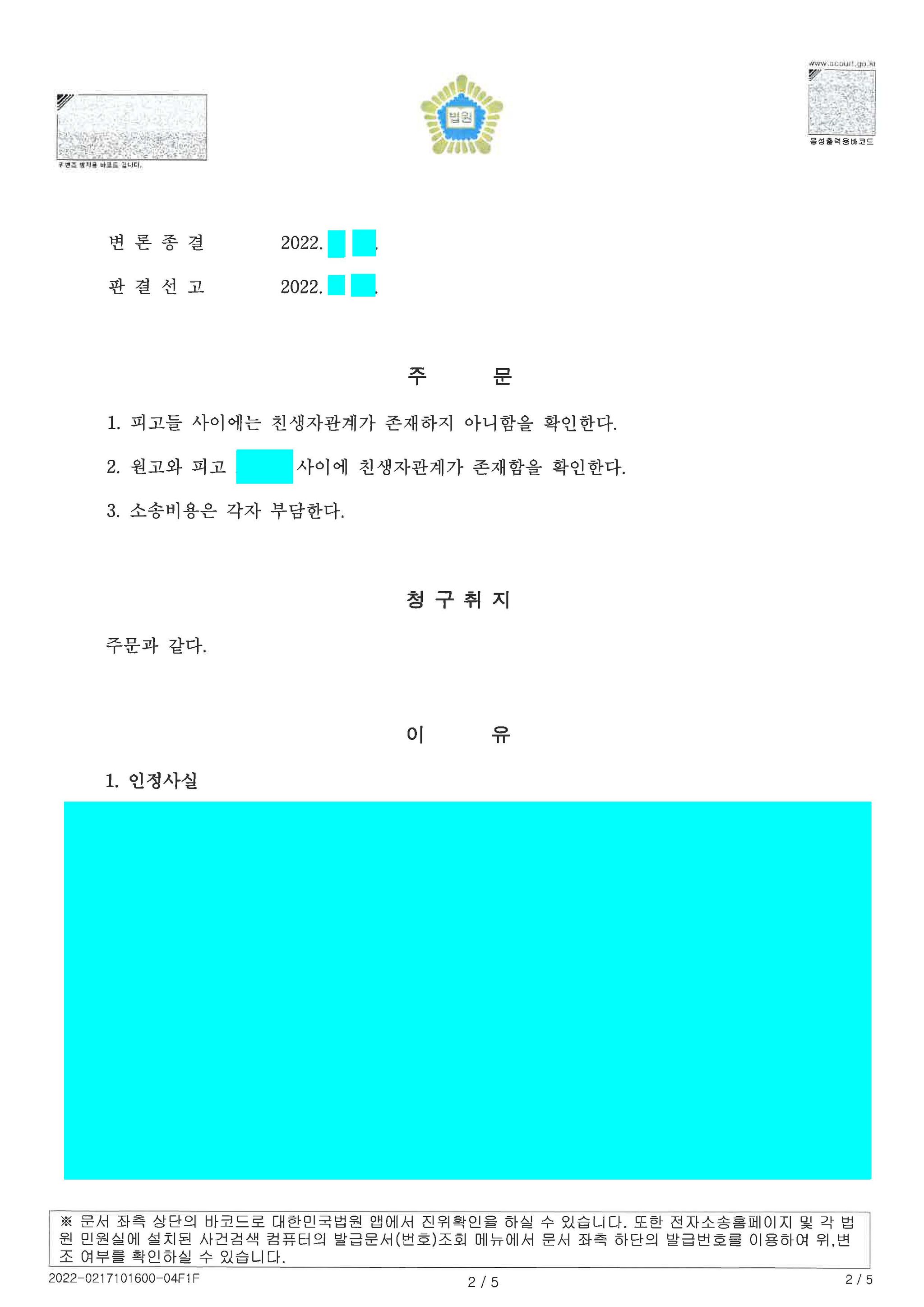원고와 B사이의 동서사실 결여가 있어 혼인 중에 A가 태어났다고 하더라도 B와 A 사이에 친생추정이 미칠 수 없다는 점, 원고와 A 사이에 유전자검사를 통해 친자관계에 있다는 점 입증하였습니다.