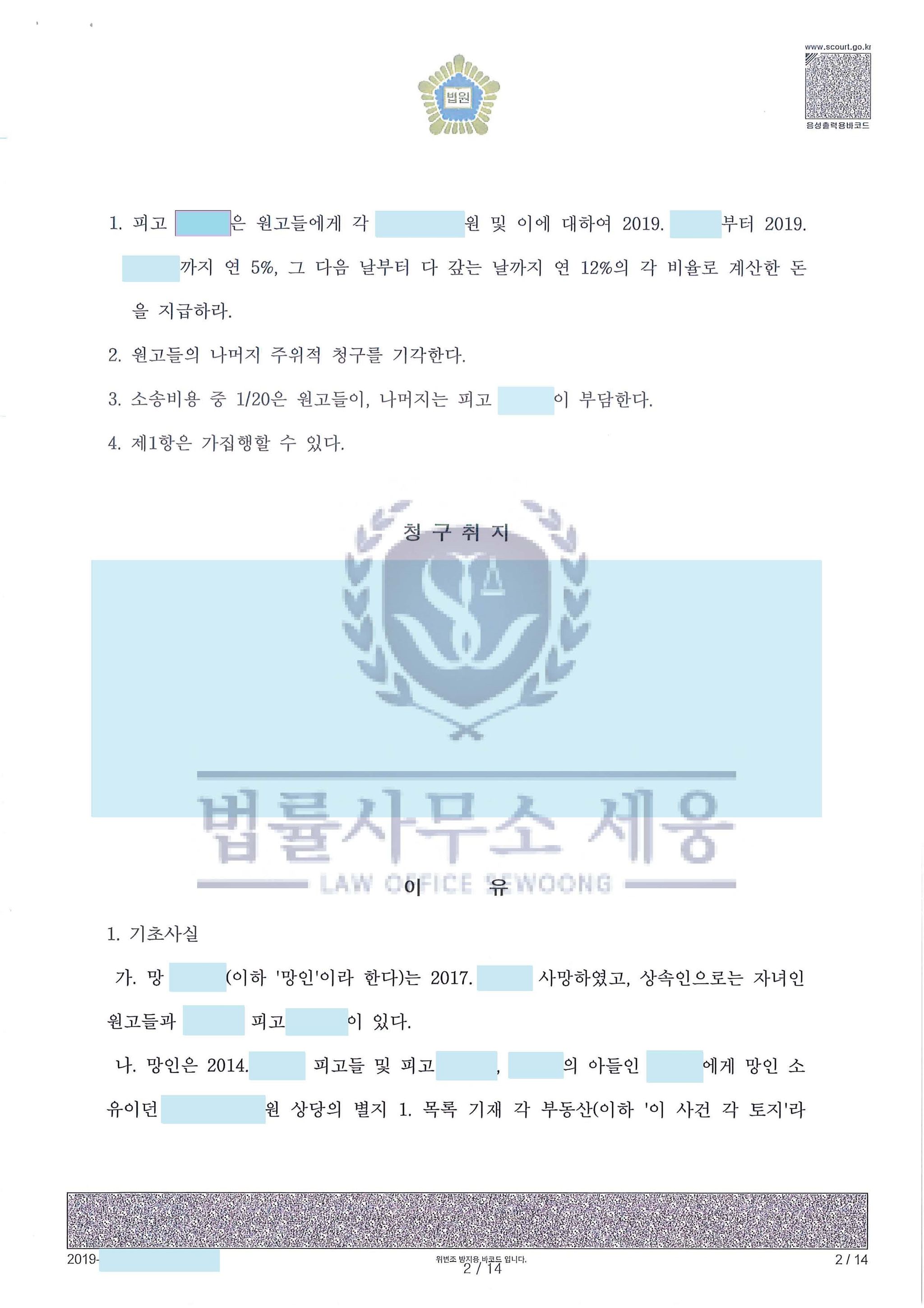 이에 원고들의 소송대리인인 법률사무소 세웅 오경수 변호사는, 원고들은 피상속인이 피고들에게 준 재산이 무엇인지조차 알 수 없었고, 상속재산분할심판 절차 중 사실조회와 시가감정을 통해서야 유류분부족분이 있다는 사실을 알았다고 주장하였습니다.