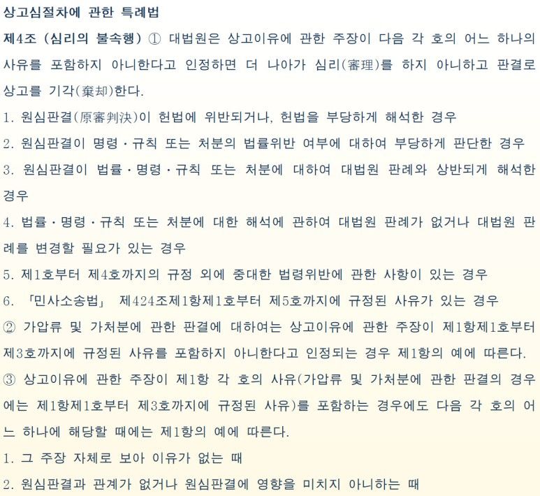 그런데 문제는 이와 같은 심리불속행제도는 형사사건에는 적용이 되지 않는다는 것입니다.