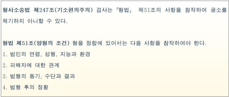 그런데 이와 같은 검찰의 방침을 비판적인 시각으로 바라보고 있는 법조인들이 많은데요, 기소유예 처분은 원래 죄는 인정되지만, 여러 상황을 고려하여 재판에 넘기지 않겠다는 처분으로 쉽게 말해서 ‘한번 봐주겠다.’는 처분이기 때문입니다.