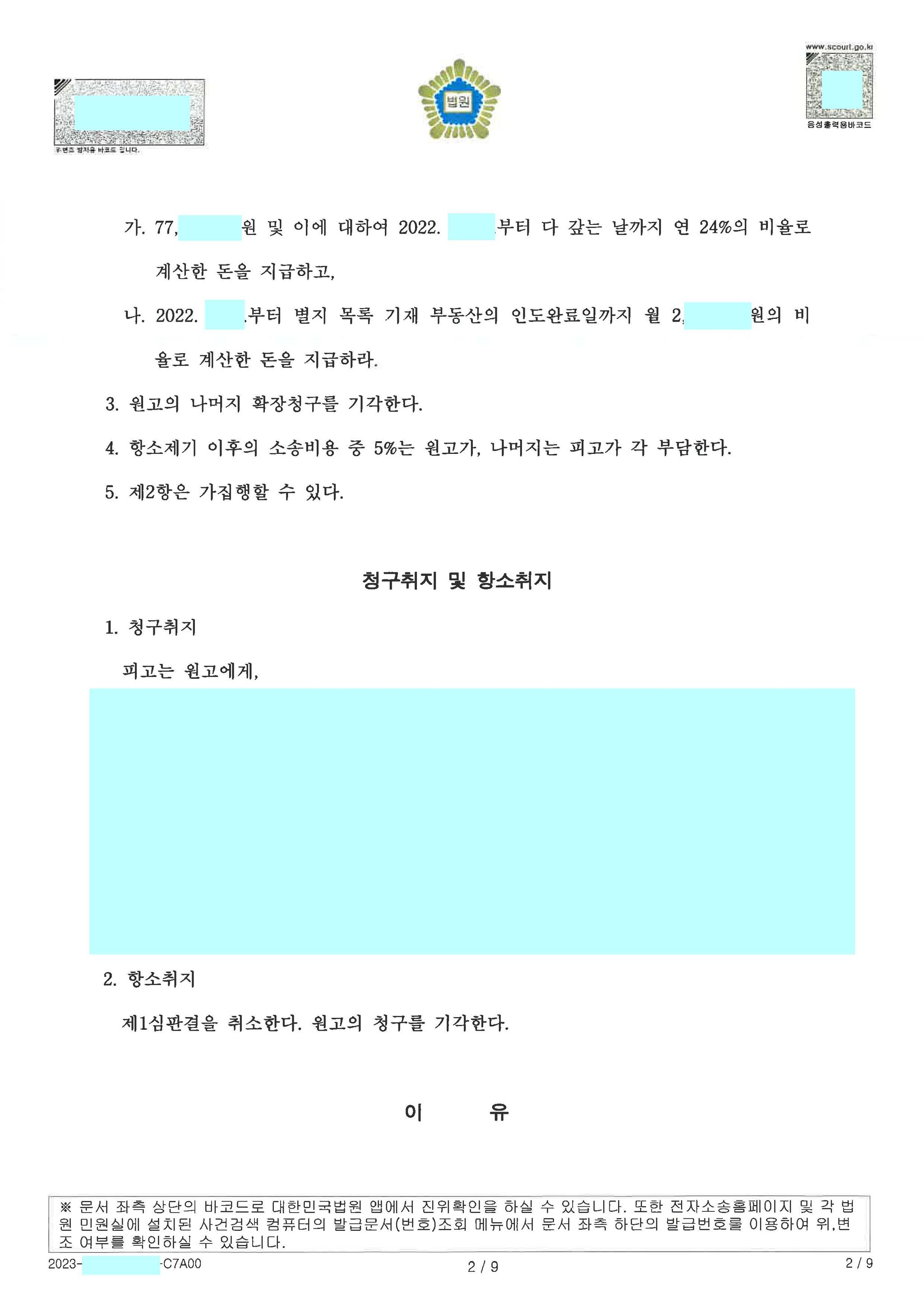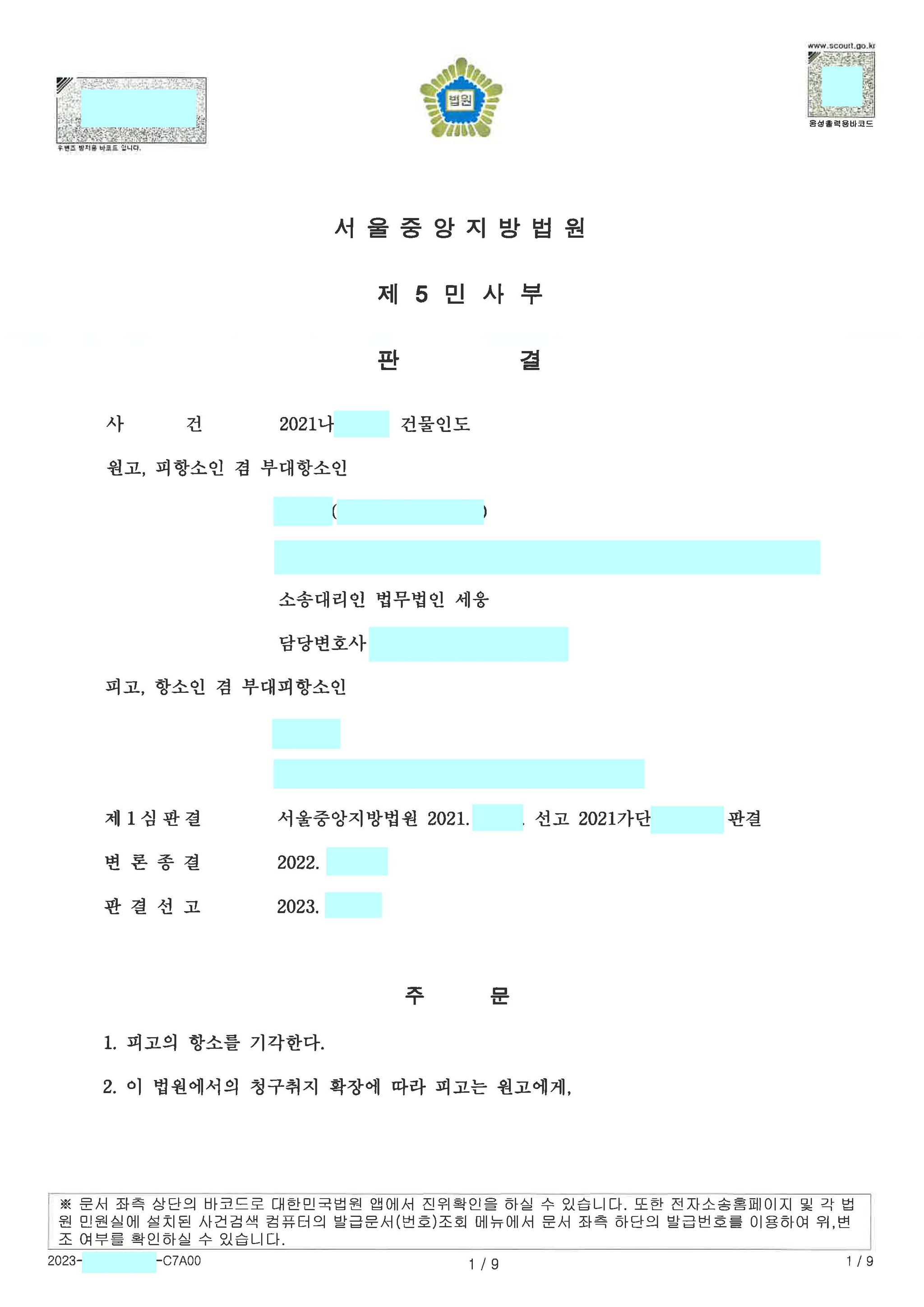 원고 일부 승소(사실상 전부 승소)로 마무리가 된 사안입니다.