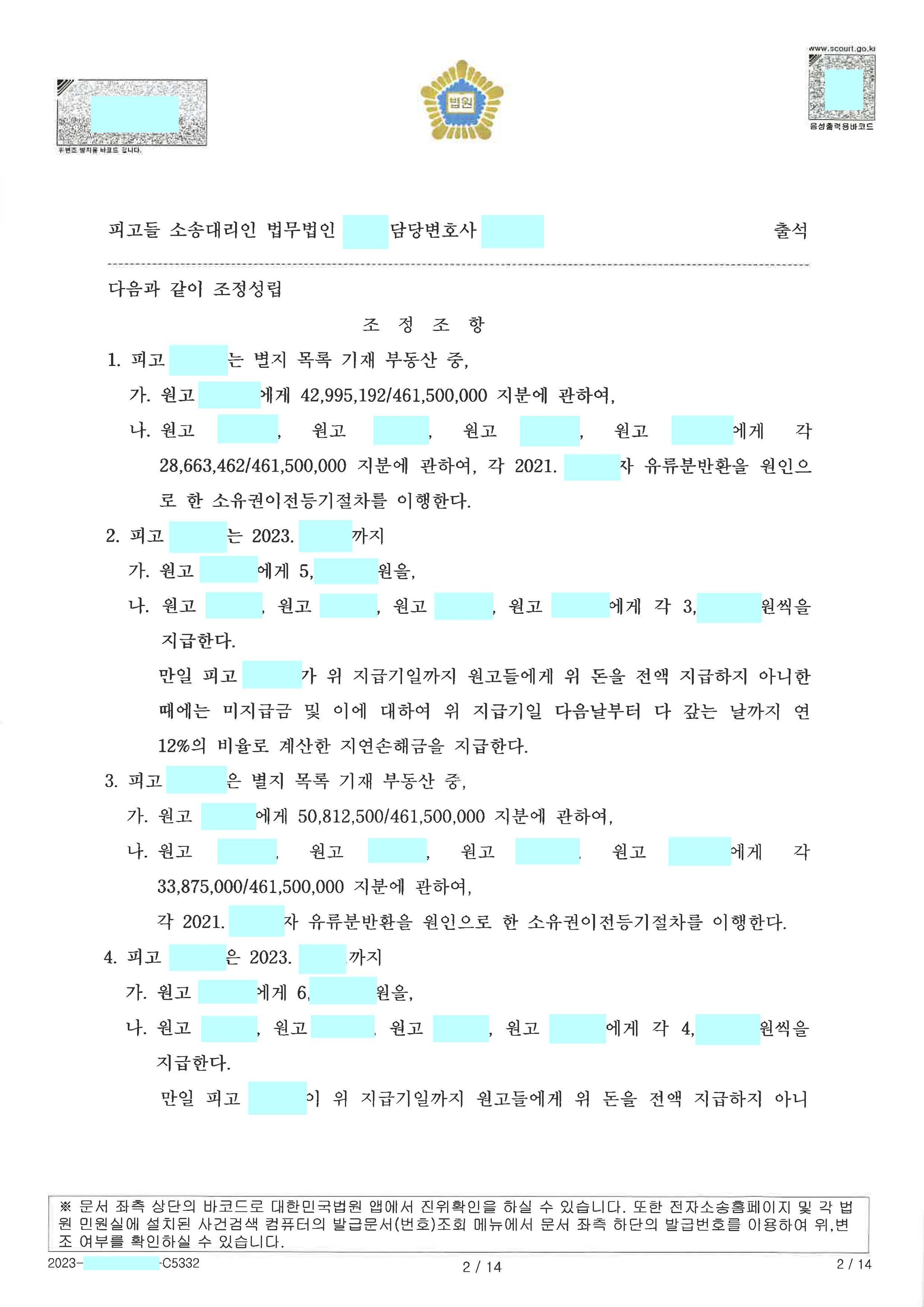조정 성립(청구 금액 기준 약 90% 승소)로 마무리가 된 사안입니다.