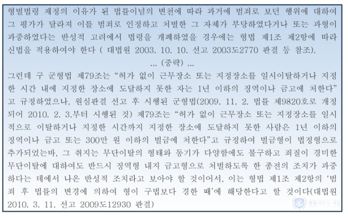 하지만 이 사건에서 A가 구법에 따라 2년을 교도소에 복역하여야할 만큼 무거운 죄를 지은 것이라고 보기는 어렵습니다.