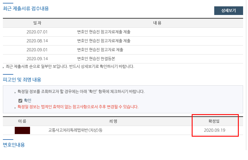 그럼 먼저 판결 확정일부터 알아보겠습니다.