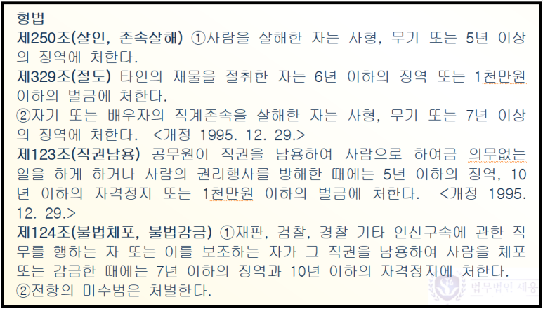 혹시 조금이라도 법학 공부를 해보신 분 중에서 형법전(刑法典)을 보신 적이 있는 분이라면 “법조문에 죄명이 표시되어 있잖아.”라고 말씀하실 지도 모르겠습니다.