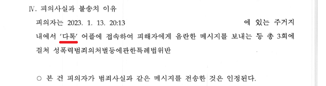 그러나 어쨌든 전혀 모르는 여성에게 동의를 구하지 않고 성기 사진을 여러 번 전송한 것은 사실이었으므로, '다톡'의 분위기나 대화방식 등 특성을 잘 알지 못하면 혐의가 인정될 가능성이 매우 높다고 판단하였습니다.
