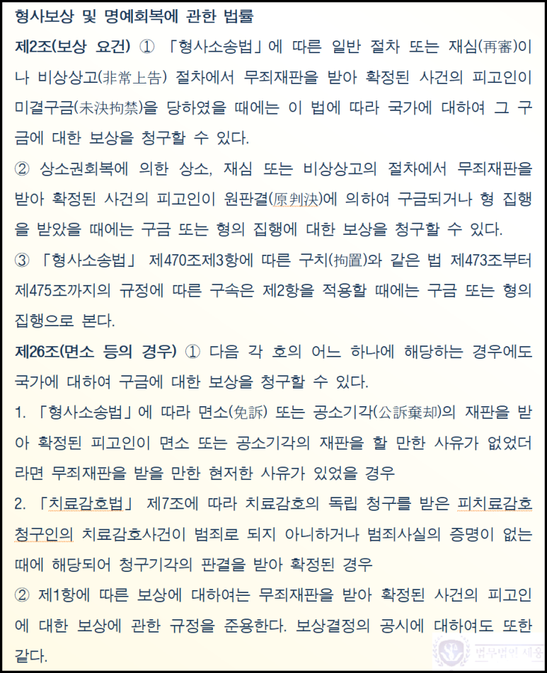 그리고 당연히 재심에서 무죄판결을 받은 경우에도 보상 받을 수 있고요.