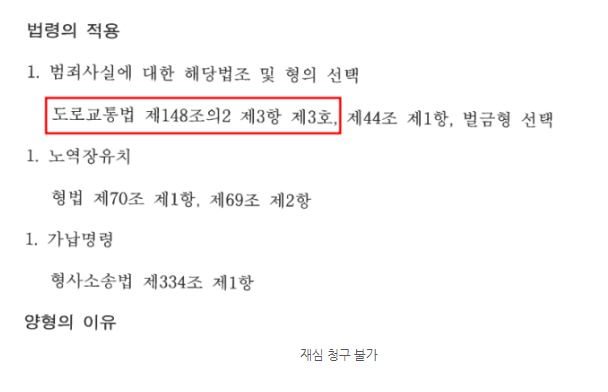 3. 2020. 12. 10. 이후 음주운전으로 적발된 분들 중 윤창호법을 적용받지 않은 분들이 있는데요, 2021. 11. 25. 위헌 결정 이후 검찰과 법원은 대부분의 2회 이상 음주운전 사건에 대해서 윤창호법이 아닌 단순음주 규정을 적용하였습니다. 따라서 윤창호법을 적용받지 않은 분들은 재심 대상이 아닙니다. 본인이 어떤 조항을 적용받았는지는 약식명령 또는 판결문을 발급받아 확인이 가능한데요, 약식명령이나 판결문을 가지고 있지 않다면 가까운 검찰청 민원실에 신분증을 가지고 가셔서 발급 받을 수 있습니다. 약식명령이나 판결문의 '적용법령' 또는 '법령의 적용'에 '도로교통법 제148조의2 제1항'이라고 기재되어 있지 않다면 이미 윤창호법을 적용받지 않은 경우이므로 재심 대상이 아닙니다.