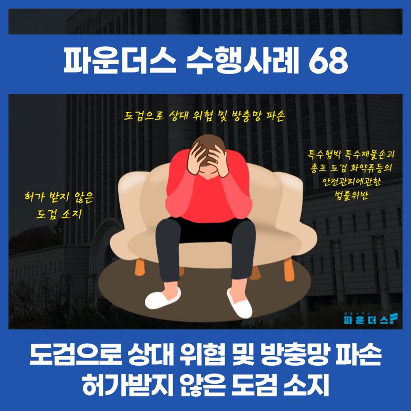 근심 가득한 표정의 의뢰인은 특수협박 혐의와 특수재물손괴 혐의 그리고 총포ㆍ도검ㆍ화약류등의안전관리에관한법률위반의 세 가지 혐의를 받고 있는 상황 속 파운더스 변호인의 조력을 요청하였습니다.