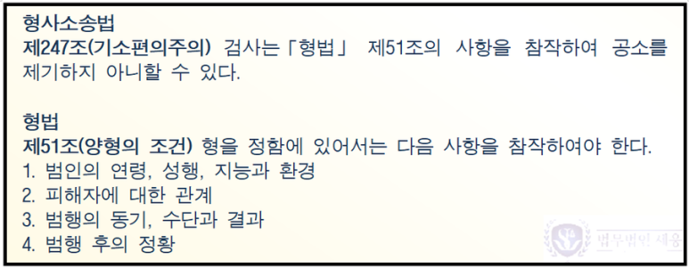 그래서 법은 검사에게 구체적인 사정을 잘 판단해서 기소를 하지 않을 수 있는 권한을 부여하고 있는 것이지요.